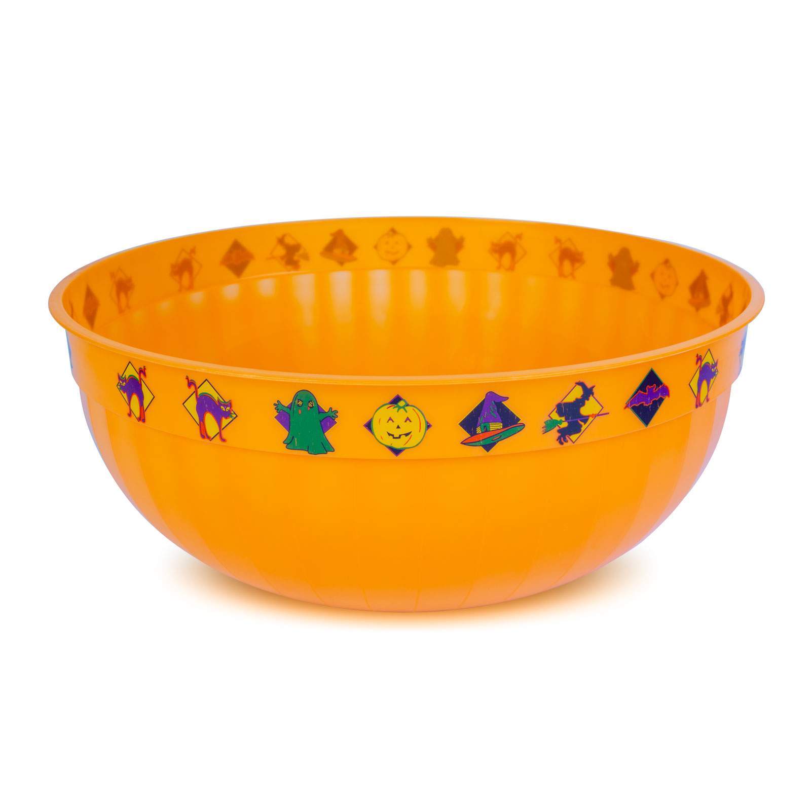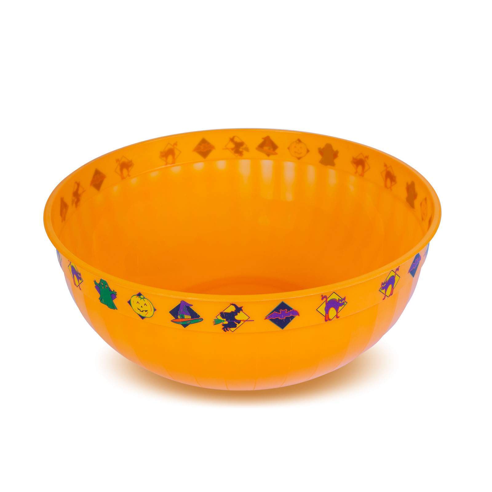 Nagyméretű, kör alakú, peremén Halloween-i motívumokkal díszített kínálótál. Kiváló választás „csokit vagy csalunk” események alkalmával vagy, ha szeretné feldobni a halloweeni asztali dekorációt! A kínálótálba mérete miatt sokminden elfér, legyen szó édességekről vagy akár gyömölcsökről. A színe és formája miatt garantáltan fel fogja hívni a vendégek figyelmét. A rugalmas, mégis strapabíró tál BPA mentes műanyag anyagból készült, amely biztonságos használatot és könnyű tiszíthatóságot biztosít.
