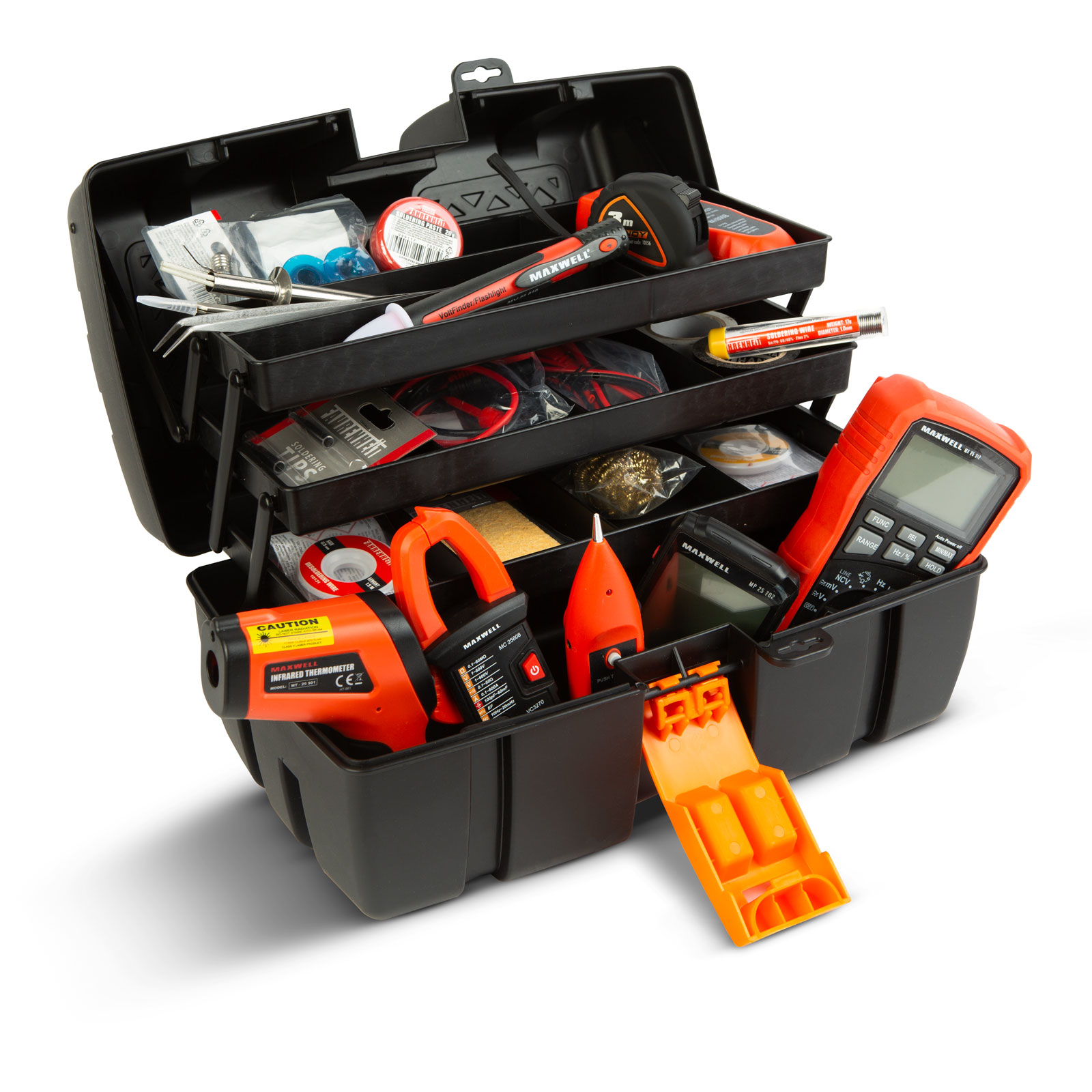 Klasszikus elrendezésű, harmónikaszerűen nyitható szerszámosláda. Erős műanyagból készült, így ellenáll az intenzív használatnak is. A szerszámokhoz történő könnyű hozzáférést a szélesre nyitható felső rész biztosítja. A különböző eszközök rendezetten tárolhatóak, áttekinthetőek és egyszerűen hozzáférhetőek a 3 szintes elrendezésnek köszönhetően.