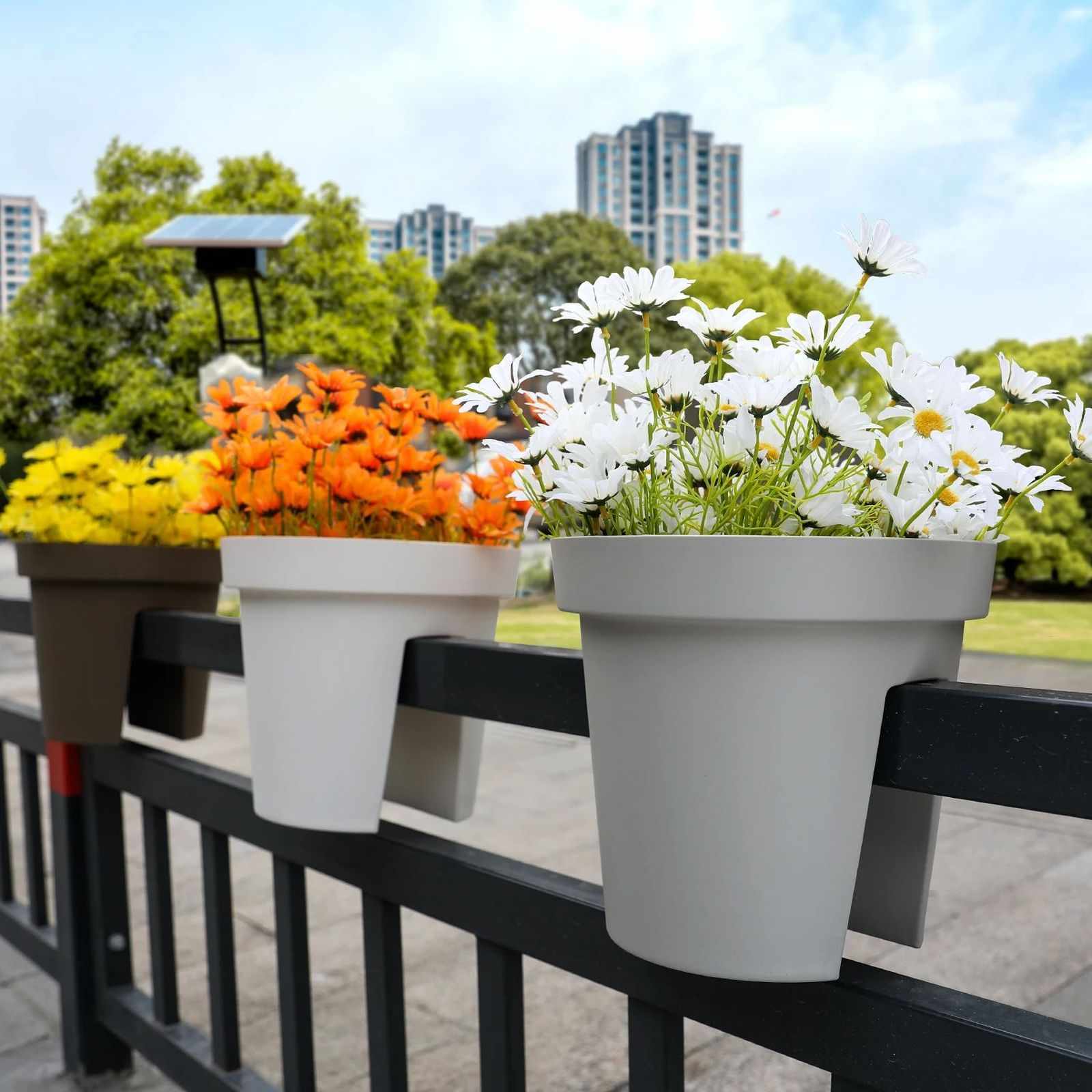 Ezt a korlátra rögzíthető virágcserepet városi, trendi stílus jellemzi. Bármilyen korlátra stabilan rögzíthető 65 mm szélességig. Nagy térfogattal rendelkezik, így biztosítva akár több virág elültetésének megfelelő űrtartalmat. A cserép alján található lyukaknak köszönhetően a felesleges víz távozni tud, ezzel biztosítva a növény egészséges fejlődését.
