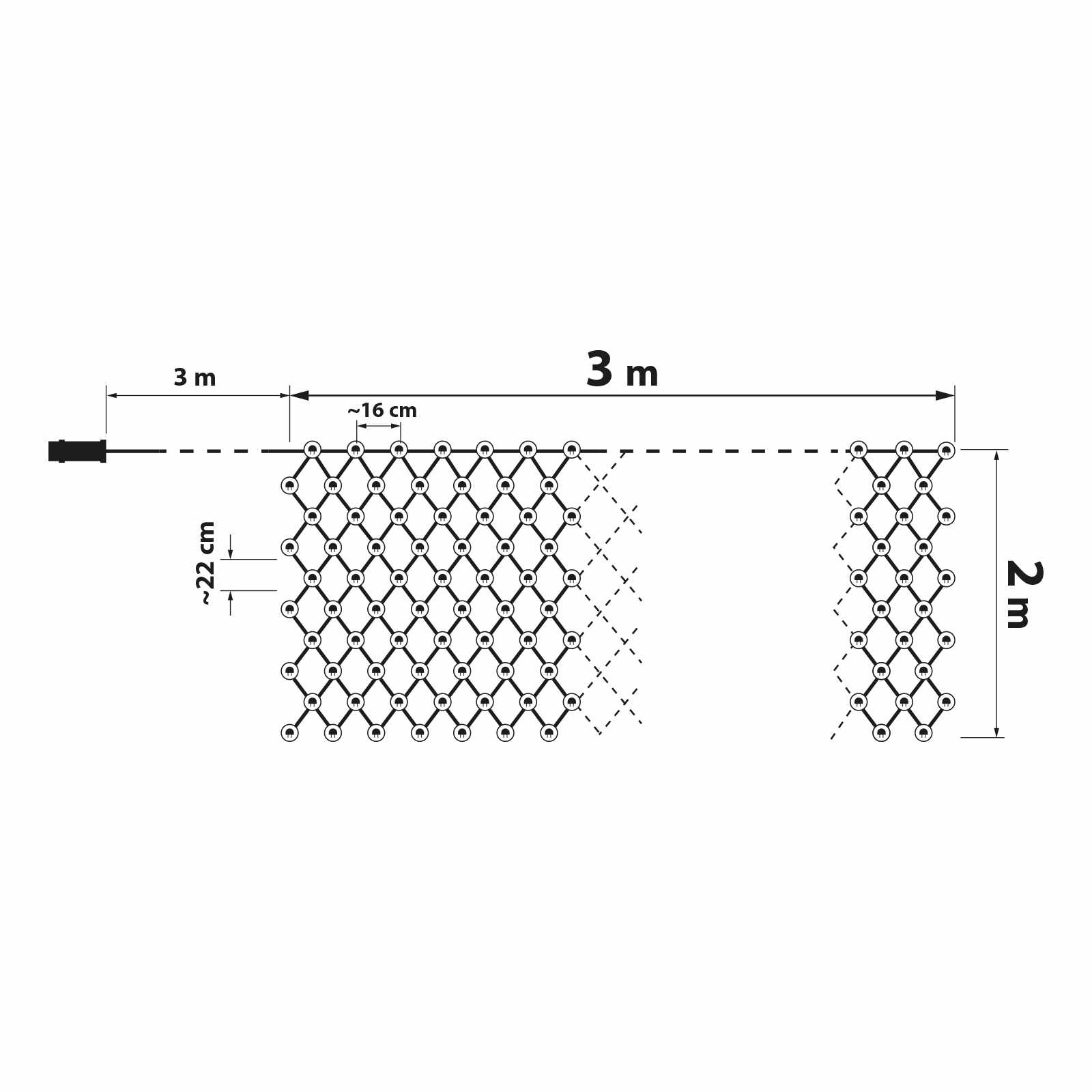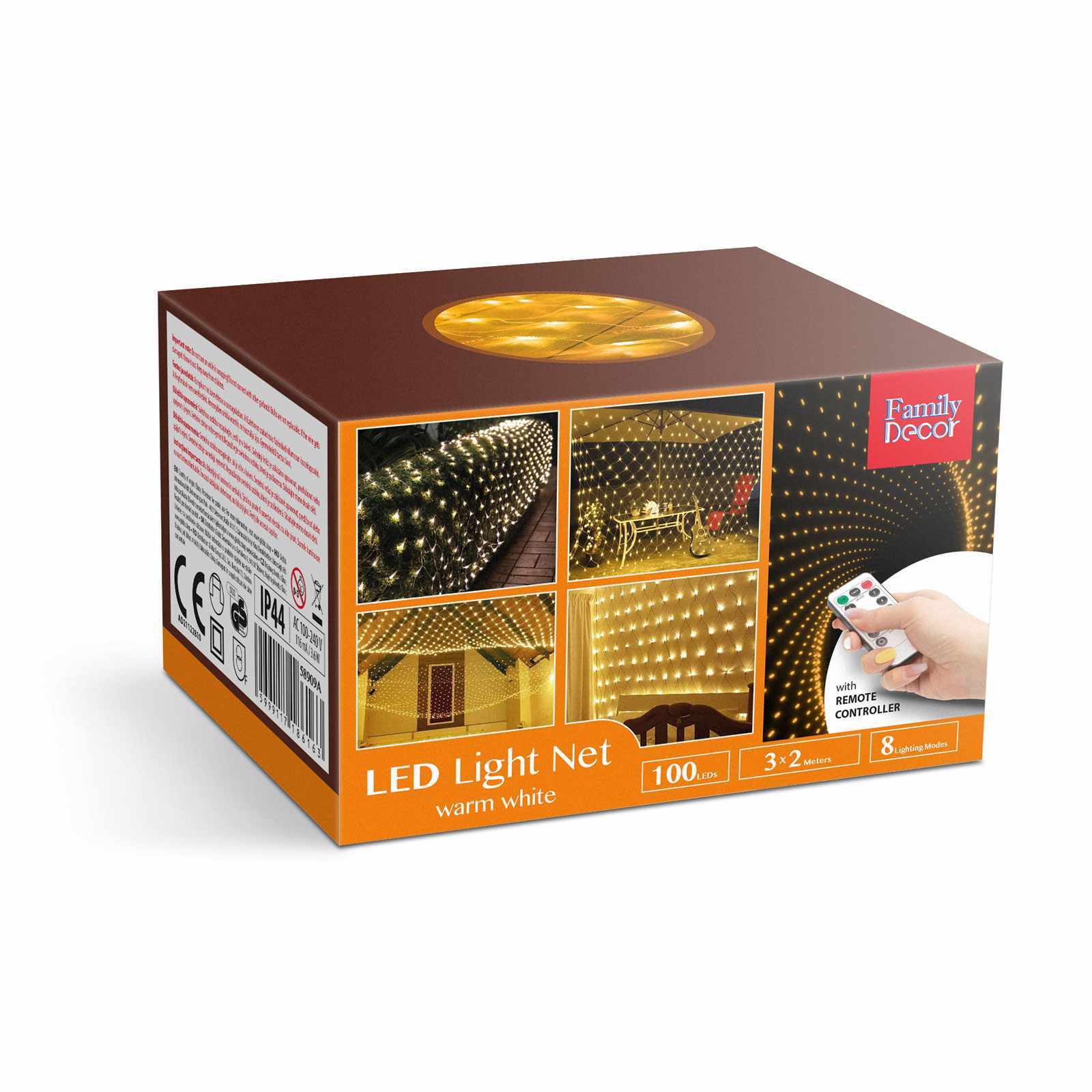 Dobja fel otthona ablakait, teraszát ezzel a melegfehér LED-es fényhálóval. A 190 db LED-ből álló háló tápellátása hálózati áramforrásról történik és az IP44 védelemnek köszönhetően akár kültéren is használható. A nagy ledszámnak köszönhetően csodálatos látványt nyújtanak a különböző fényjátékok, amelyek az adapteren lévő szilikon gomb vagy távirányító segítségével állíthatóak be. Ideális lehet ablakok, filagóriák, erkélyek díszítésére is.