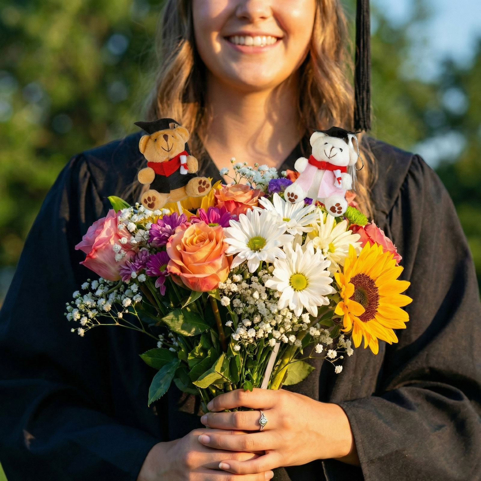 - Egyetemi sapkával a fején