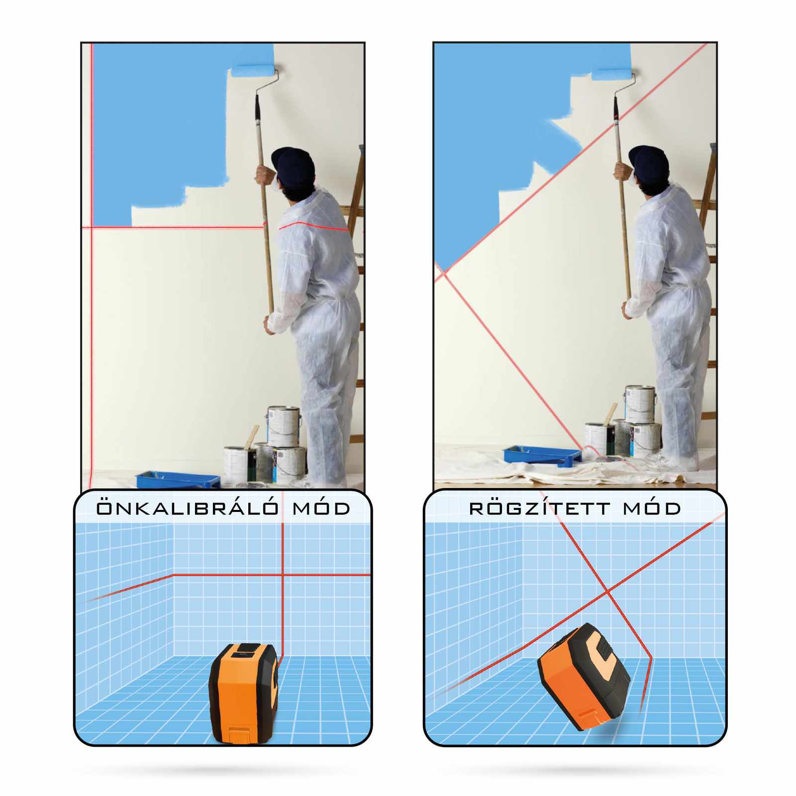 - Normál és fix lézerkereszt üzemmód