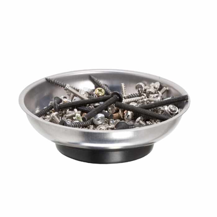 Ideális szegecsek, csavarok, anyák tárolására. A gumírozott, mágneses talpnak köszönhetően az alkatrészek nem gurulnak szét.