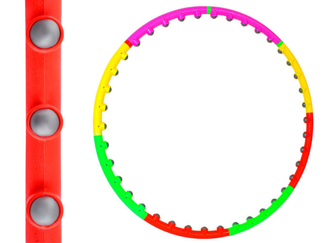 Termékünk hatékonyan segíti az alakformálást, ugyanis a speciálisan tervezett mágneses masszázslabdák gyakorlás közben nyomást gyakorolnak a hasizomra, a hátra, a csípőre. A mágneseknek köszönhetően csökkenti az izomfeszültséget, serkenti a véráramlást, helyreállítja az elektromágneses egyensúlyt. A mágnesek stimulálják az idegrendszert. A termék 8 szegmensből áll, mindegyiken 5 golyó található, tehát összesen 40 masszázsgolyót tartalmaz. Rendkívül könnyen össze- és szétszerelhető.
