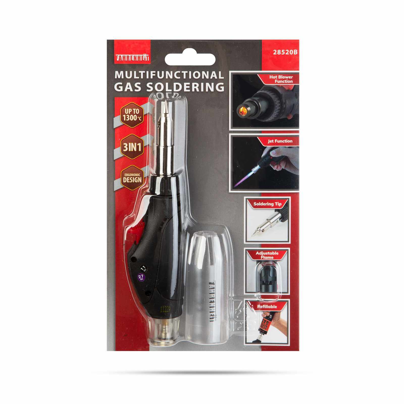 A mini, multifunkciós gázüzemű forrasztónak minden barkácsládában helye van. Hatékonyan felhasználható különböző finomelektronikai forrasztások, hőlégfúvás, zsugorítás (zsugorcső), szúrólánggal történő hevítési munkálatokhoz. Ez a kompakt készülék rengeteg hasznos funkcióval rendelkezik: biztonsági kapcsoló, lángszabályozóval, piezo gyújtórendszer, gázkeverék szabályzónyílás, gáztartály ablak, kihajtható tartóláb. A forrasztópákahegy lecsavarásával használhatjuk akár hőlégfúvóként is. A gáztartály újratölthető ezáltal a készülék hosszú időn át használható.