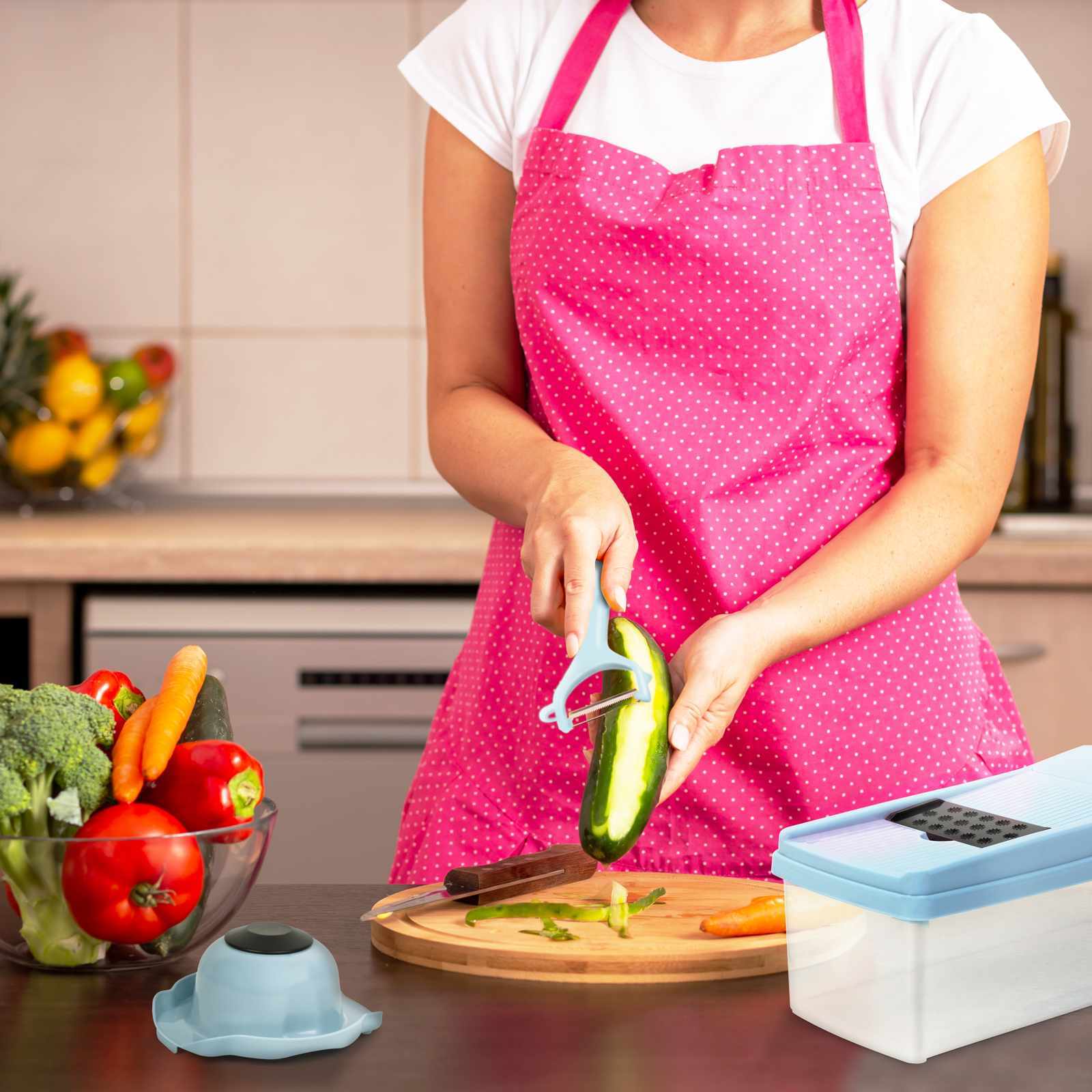 Vágjon, szeleteljen, aprítson, hámozzon zöldségeket, gyümölcsöket egyszerűen és gyorsan ennek a multifunkciós aprítónak köszönhetően. Minden konyha nélkülözhetetlen kelléke, használatával biztonságosabbá és gyorsabbá tehetőek a munkafolyamatok. A hagymaaprítás okozta könnyezés a múlté, aprítson egyenesen a tárolóedénybe, amely tetővel is rendelkezik, így akár későbbi felhasználásra is eltehető hűtőszekrénybe. Az ételdoboz áttetszősége miatt könnyen áttekinthető milyen élelmiszer van benne.