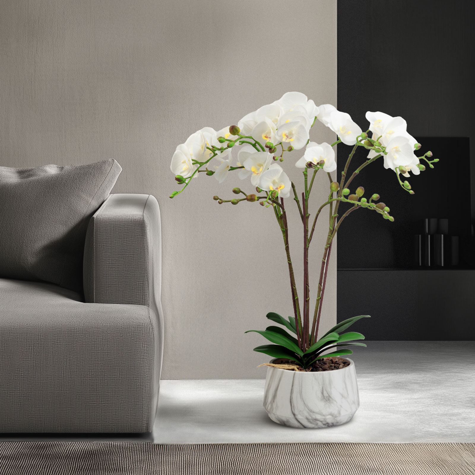 Műnövény dekoráció – orchidea – fehér – 58 cm
