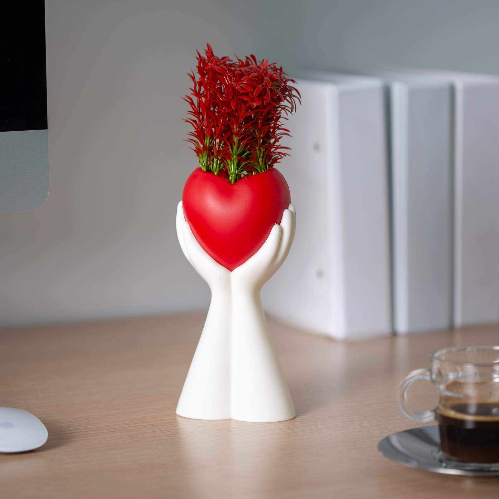 Műnövény dekoráció – piros, szív – 10 x 35 cm