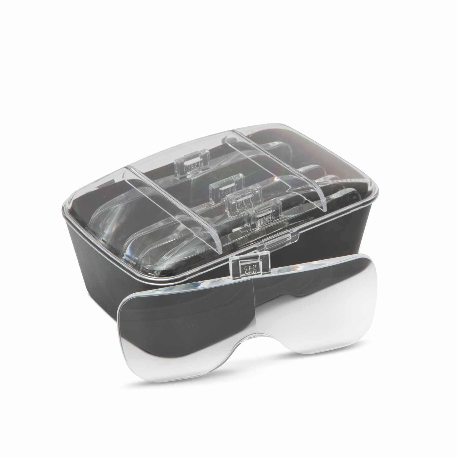 • Cserélhető, állítható távolságú és dönthető lencsék, praktikus tárolódobozban