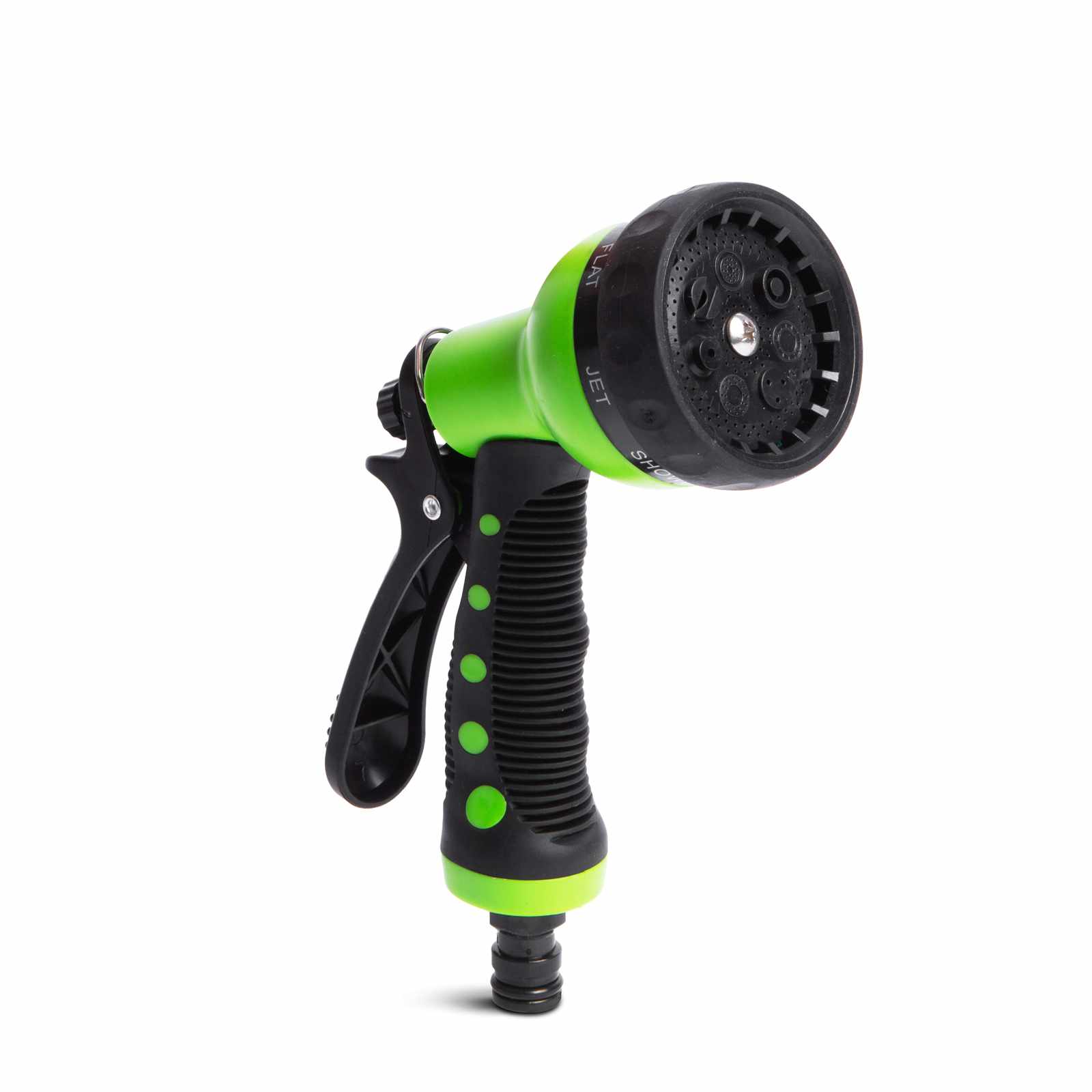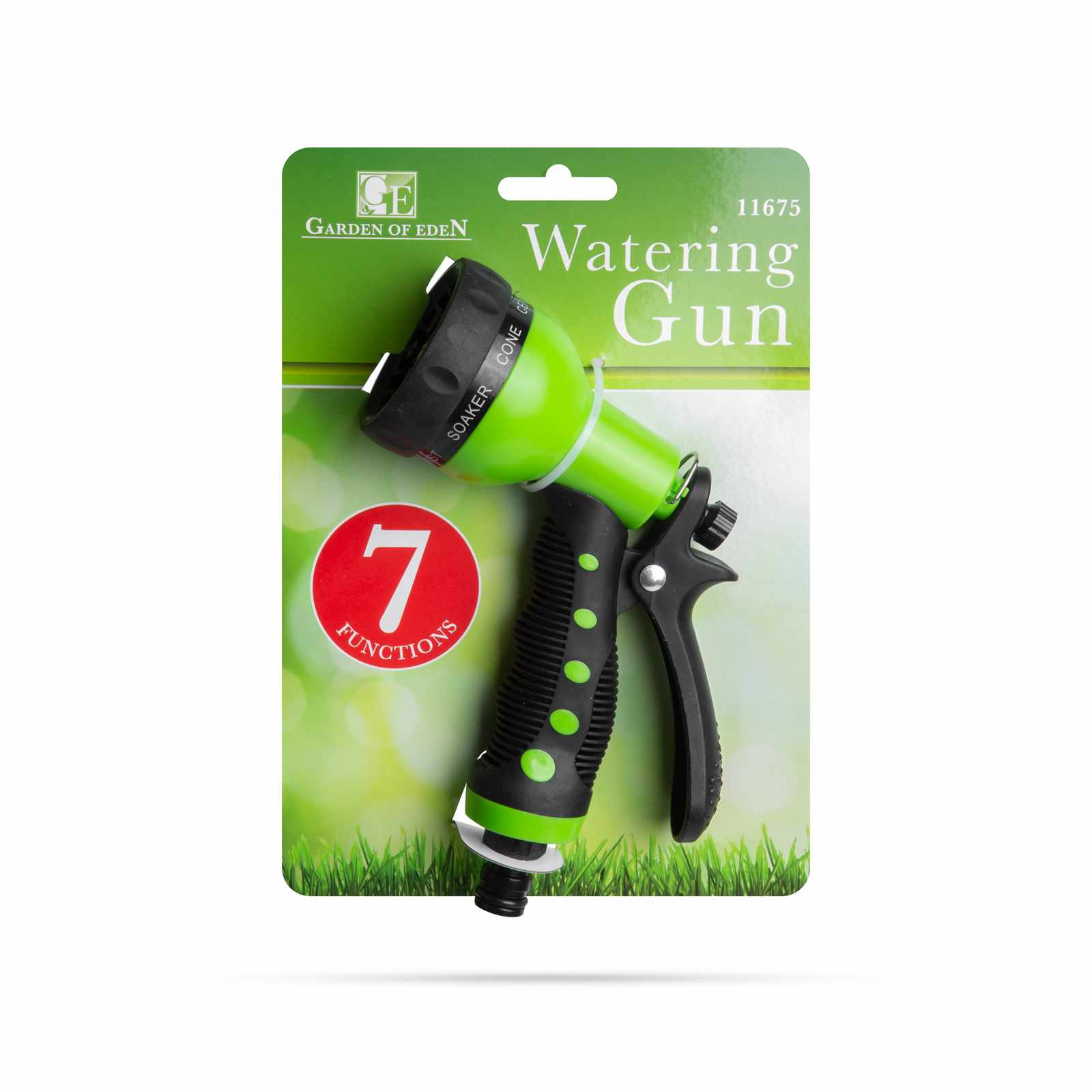 Műanyag locsoló pisztoly, amely 7 db locsolási funkcióval rendelkezik, így garantáltan megtalálja az Önnek szükséges vízsugarat, legyen szó porlasztásról vagy vékony vízsugárról. A gyorscsatlakozó kuplung segítségével könnyen hordozható egyik öntözőtömlő végéről a másikra. A kitámasztókarnak köszönhetően nem szükséges a locsolás teljes ideje alatt nyomvatartania a ravaszt.