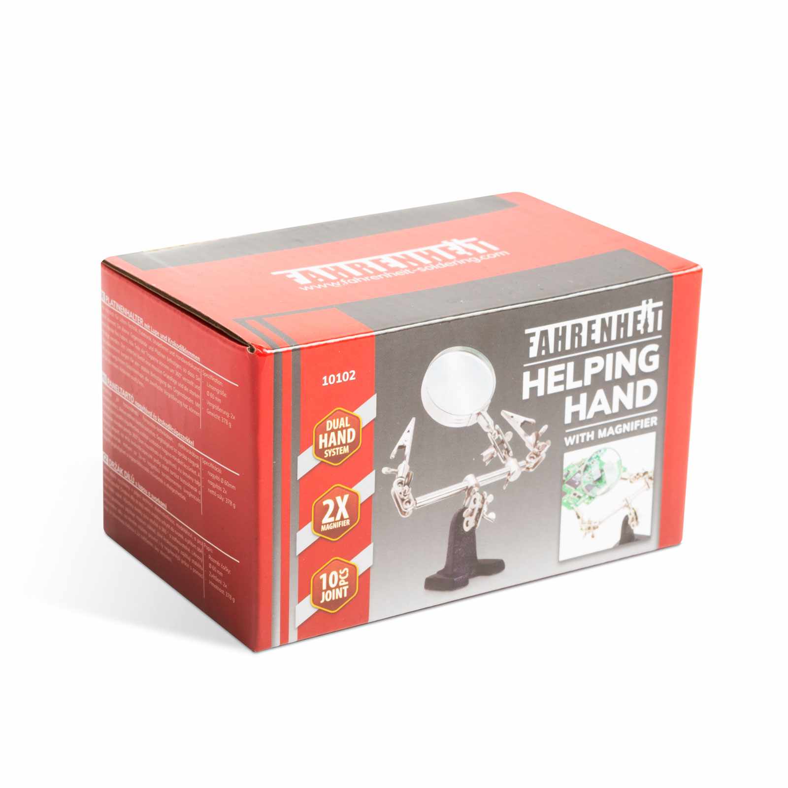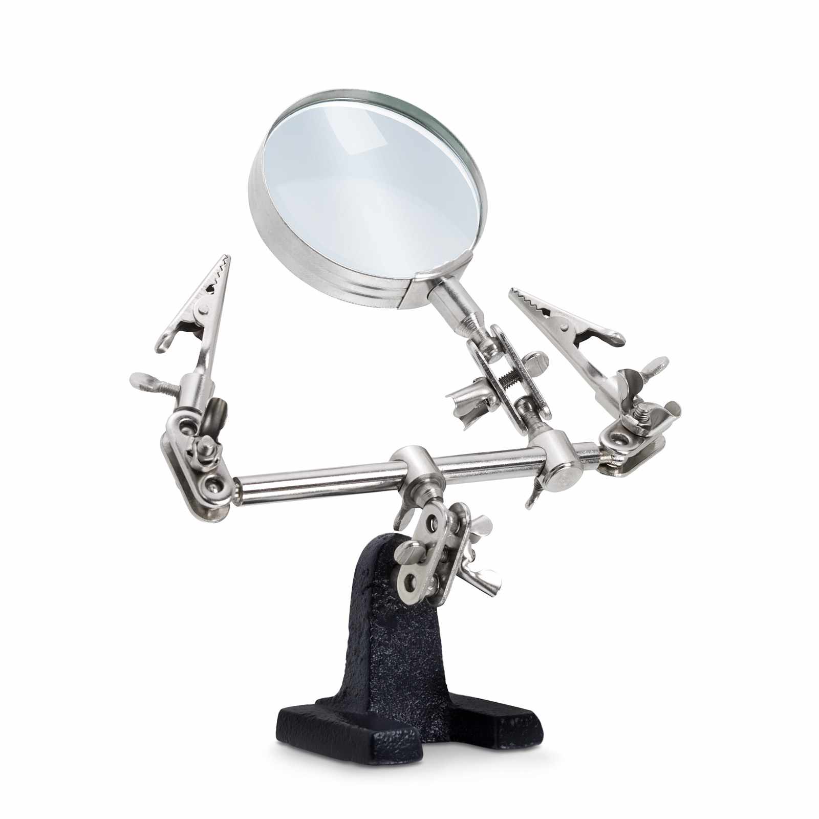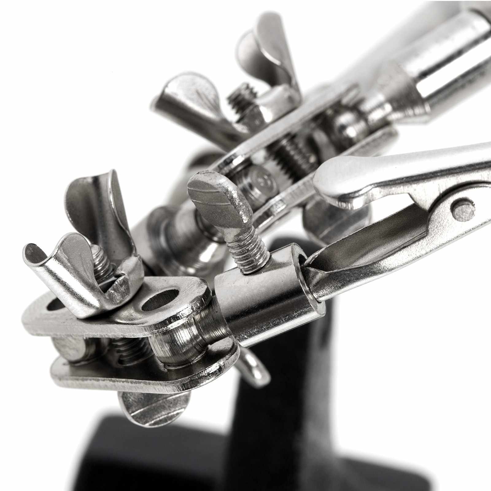 Rendkívül jól használható forrasztás-technikában, elektronikában, modellezéshez, illetve otthoni barkácsoláshoz. Segítségével az apróbb tárgyak, panelek könnyedén rögzíthetőek ezáltal szabadon hagyva mindkét kezünket. A tartókarok minden pontja 360°-ban mozdítható és rögzíthető. Az öntvény talp masszív alapot, az erős krokodilcsipeszek pedig stabil tartást biztosítanak a munkadarabnak, melyen az 2x-es nagyítású torzításmentes üveglencsés nagyító segítségével a legaprólékosabb műveletek is elvégezhetőek.