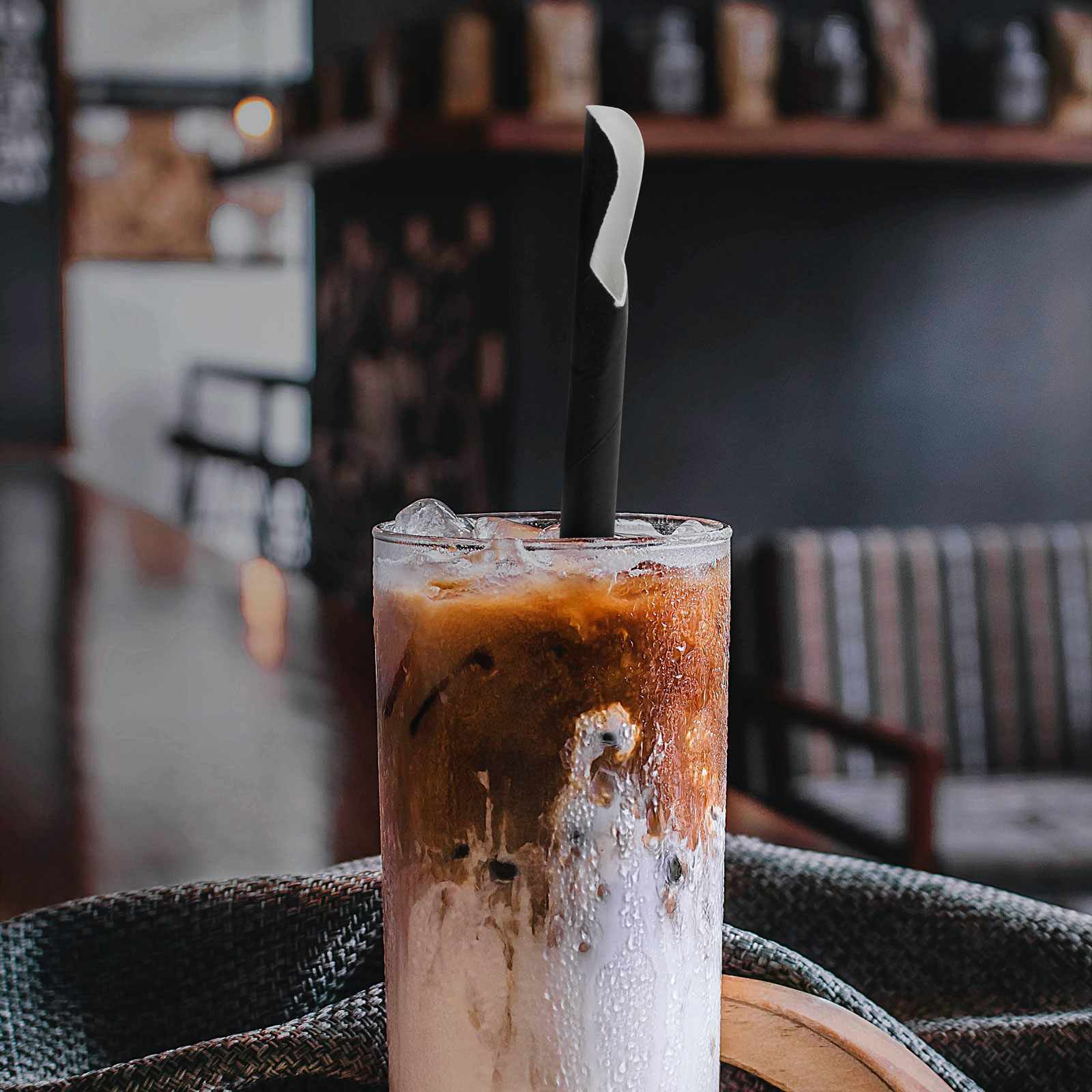 Papír szívószál – fekete, kanállal – 200 x 8 mm – 150 db / csomag