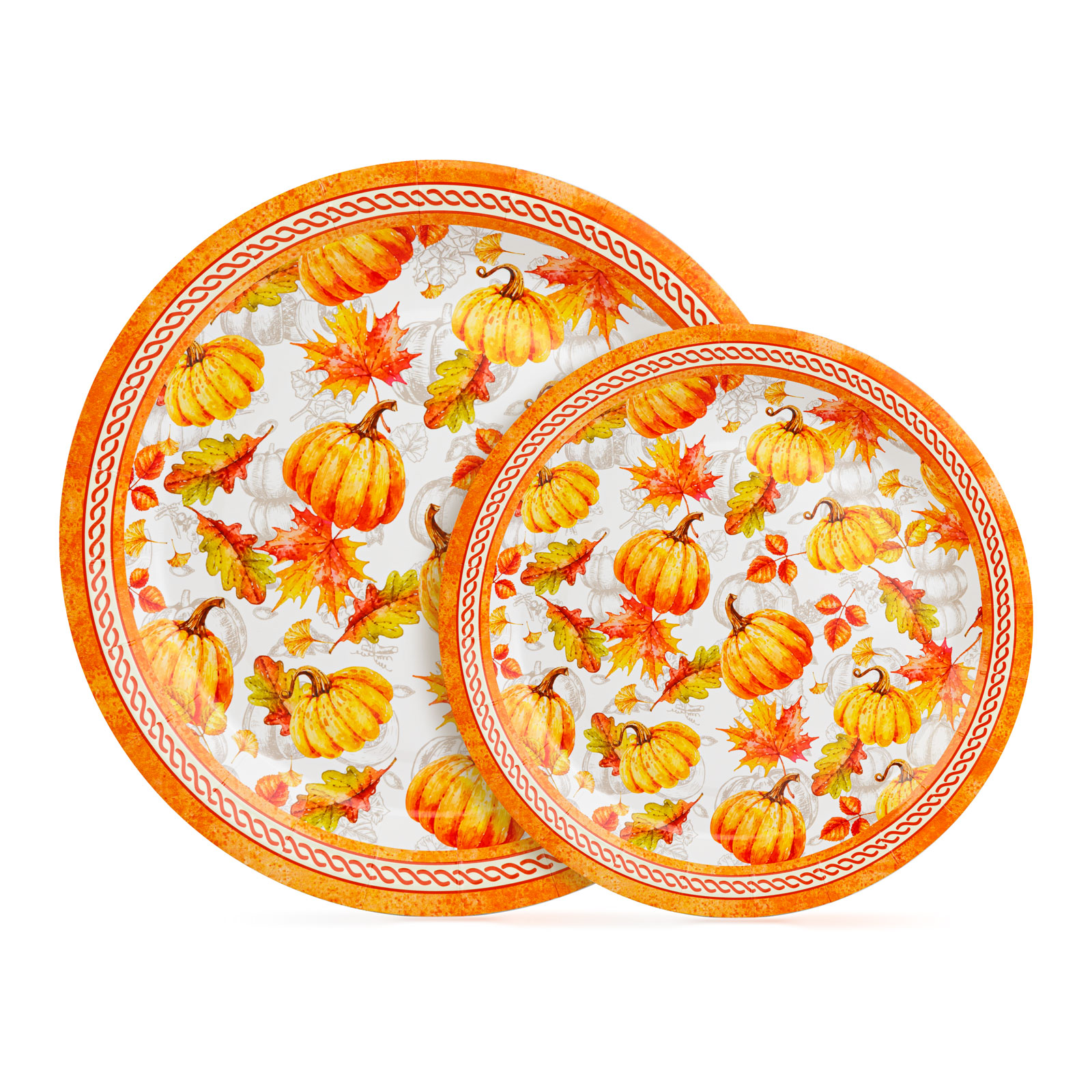 Dobja fel őszi vagy Halloween tematikájú rendezvényét ezzel a hangulatos papírtányér szettel! A csomagban a tökös mintával díszített tányérok két méretben vannak, így ideálisak desszertekhez és főételekhez egyaránt. A csomag 12 darab tányért tartalmaz, tökéletes választás családi összejövetelekhez, ünnepi vacsorákhoz vagy tematikus bulikhoz.