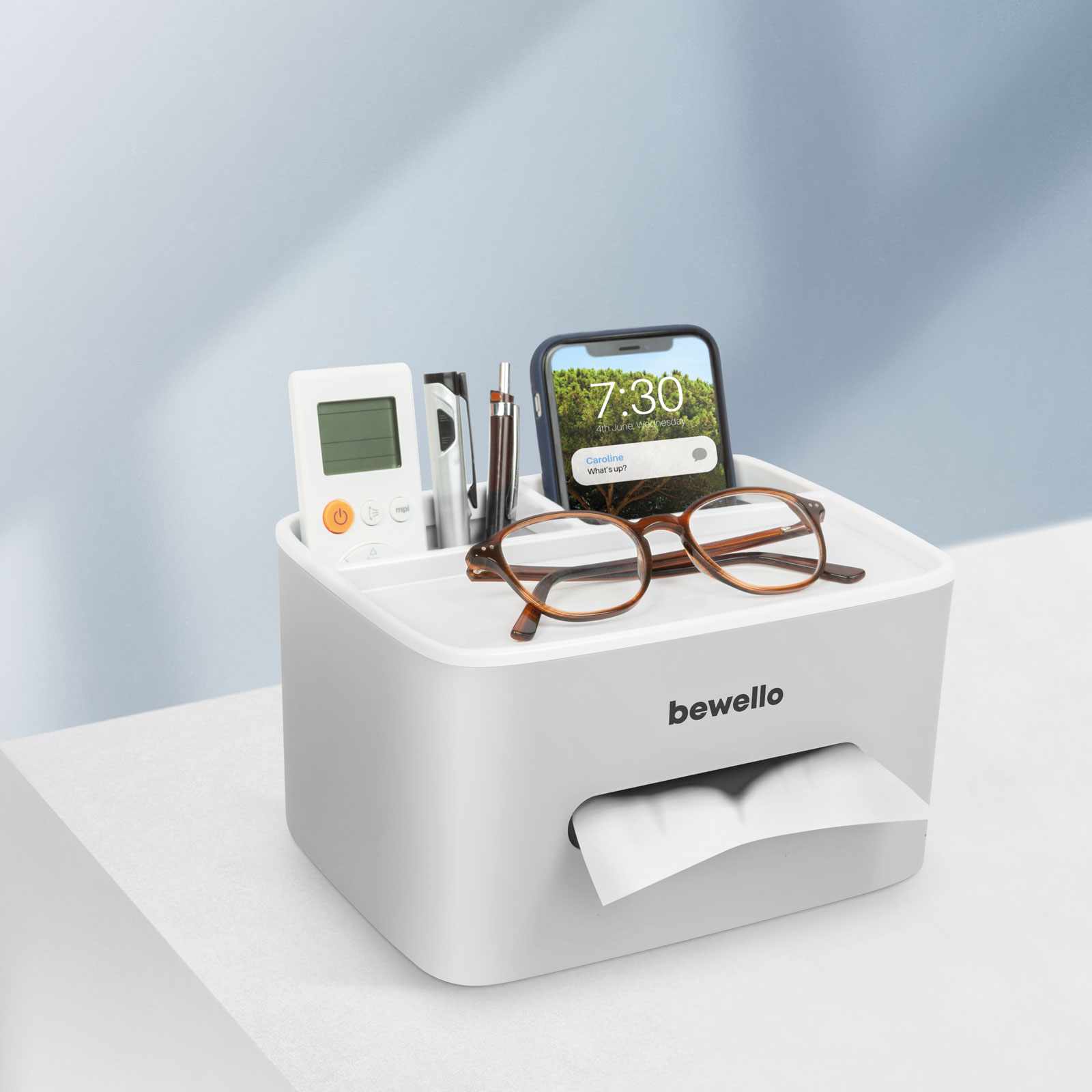 Tárolja papírzsebkendőit ebben az asztali tartóban. Az adagoló oldalán található nyíláson keresztül könnyen hozzáférhető a bele helyezett kendő, mégis rejtve marad a szem elől. A tartó tetején található nyílások alkalmassá teszik írószerek, irodai eszközök, mobiltelefon tárolására is. Ideális választás lehet hálószobába, fürdőszobába, irodába történő alkalmazásra.