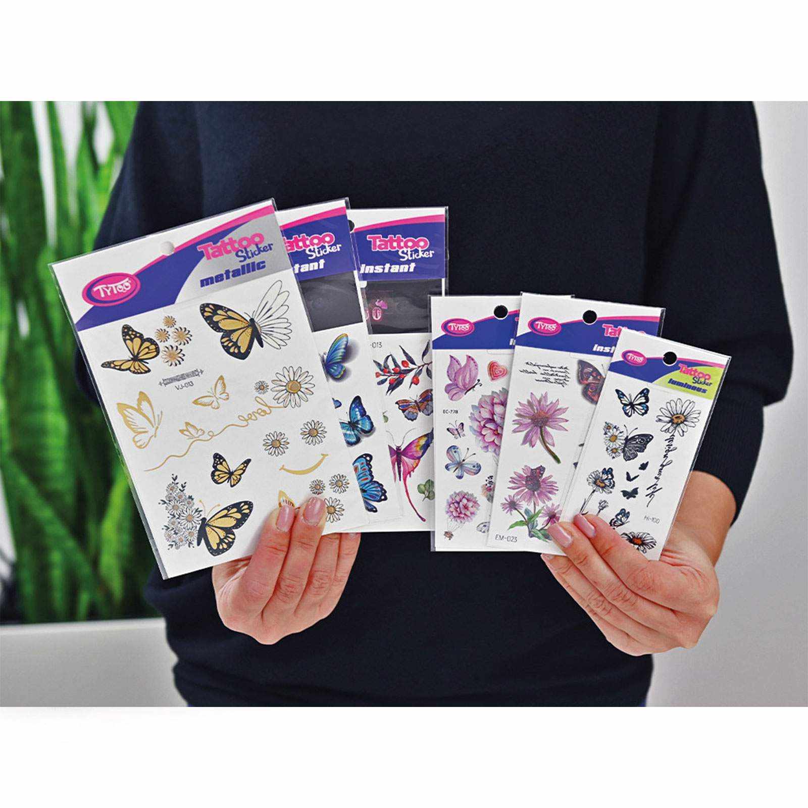 Könnyen felvihető, egyszerű és látványos tetkók, a virágok és pillangók szerelmeseinek. Ezek az ideiglenes tetoválás matricák kiváló minőségűek, így hosszabb ideig, napokig is megőrzik élénk színüket és részletgazdagságukat. Könnyen felhelyezhetőek és eltávolíthatóak, anélkül hogy irritálnák vagy károsítanák a bőrt. A szett tartalma: 65 db Virágos és pillangós matrica tetoválás 6 db íven, rengeteg pillangó, virág, világítósak és sok színűek, sőt még egy virágballon is.