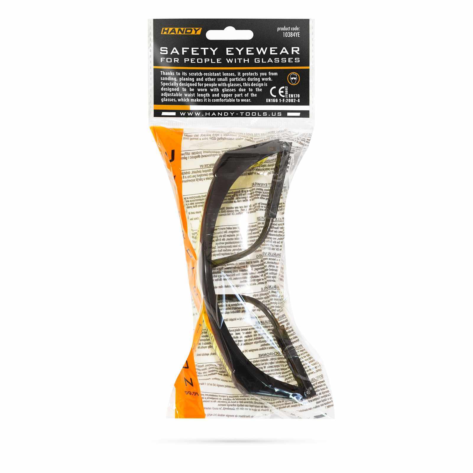A karcolódásmentes lencséknek köszönhetően munkavégzés közben védelmet nyújt csiszolás, gyalulás és egyéb munkák során keletkező apró szemcsék ellen. Ez a kivitel kifejezetten szemüveges emberek részére készült, az állítható szárhossznak és a szemüveg felső részének kiképzése miatt, kényelmesen hordható látást segítő szemüveggel együtt, de akár anélkül is használható.