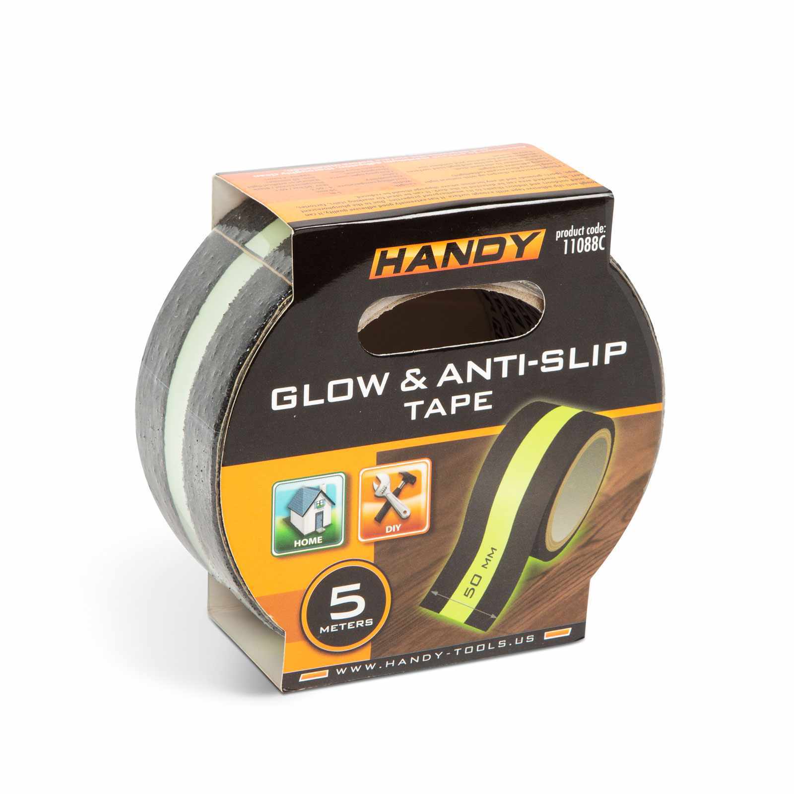 Ragasztószalag – csúszásmentes – 5 m x 50 mm – foszforeszkáló / fekete Handy 11088C