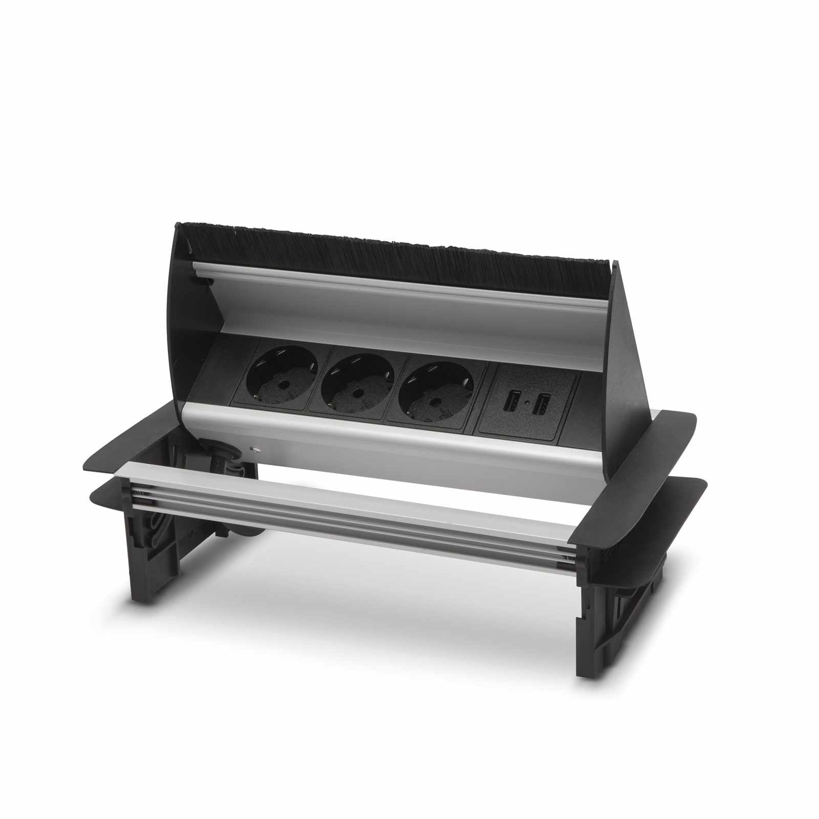 Süllyeszthető elosztó irodai és otthoni felhasználásra, fém házzal. Asztala, bútora legyen mindig elegáns és rendezett, mégis funkcionális. A beépített USB csatlakozónak köszönhetően könnyen töltheti mobil eszközeit. A rejtett elosztó kiváló megoldás lehet ha már például kész konyhával rendelkezik, de nincs elegendő konnektor a kívánt helyen. Ilyenkor falvésés és villamos hálózat bővítés nélkül, remek alternatíva lehet egy rejtett elosztó. Egy mozdulat és máris rendelkezésre áll 3 szabad konnektor. Ideális lehet olyan elektromos eszközökhöz, amit nem folyamatosan használunk, kenyérpirító, vízforraló… Ha használaton kívül vannak, az elosztó egy mozdulattal elrejthető, ezzel is megkönnyítve például a takarítást, valamint rendezett, letisztult külsőt ad a helységnek.