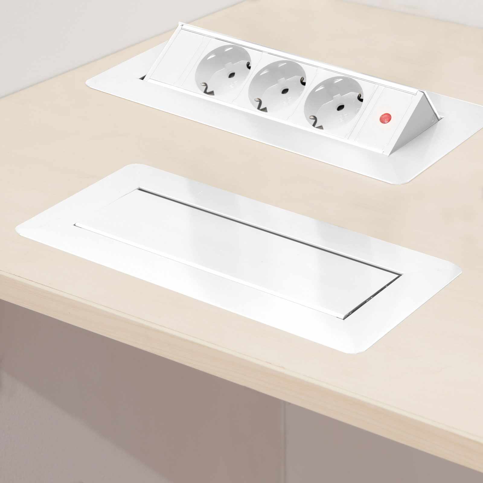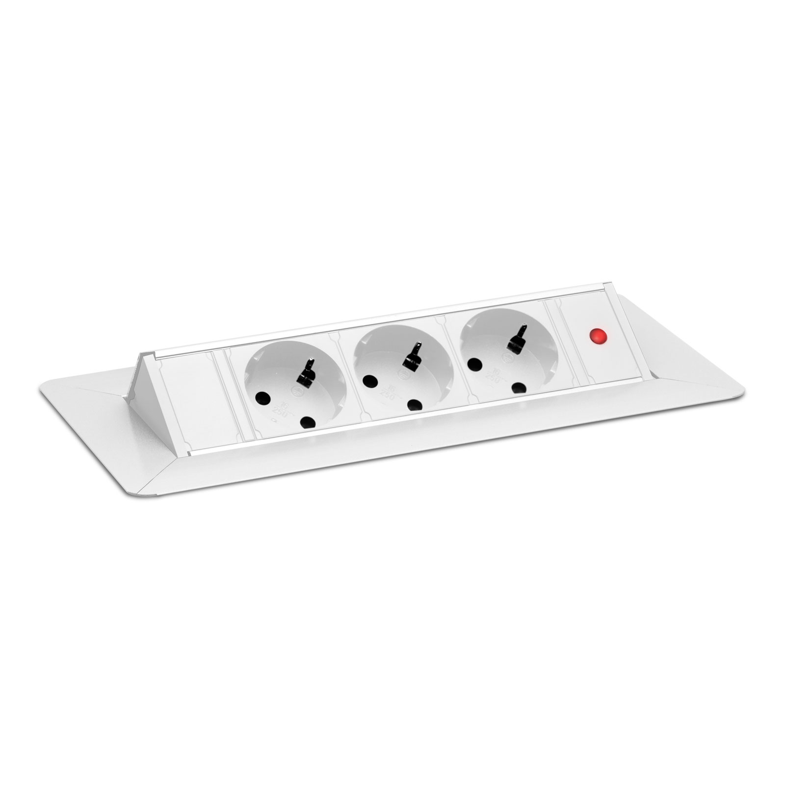 Süllyeszthető elosztó irodai és otthoni felhasználásra, ezüst felülettel, 3 db gyermekvédelemmel ellátott aljzattal. Asztala, bútora legyen mindig elegáns és rendezett, mégis funkcionális. A rejtett elosztó kiváló megoldás lehet ha már például kész konyhával rendelkezik, de nincs elegendő konnektor a kívánt helyen. Ilyenkor falvésés és villamos hálózat bővítés nélkül, remek alternatíva lehet egy rejtett elosztó. Egy mozdulat és máris rendelkezésre áll 3 szabad konnektor. Ideális lehet olyan elektromos eszközökhöz, amit nem folyamatosan használunk, kenyérpirító, vízforraló… Ha használaton kívül vannak, az „flip-up” elosztó egy mozdulattal elrejthető, ezzel is megkönnyítve például a takarítást, valamint rendezett, letisztult külsőt ad a helységnek.