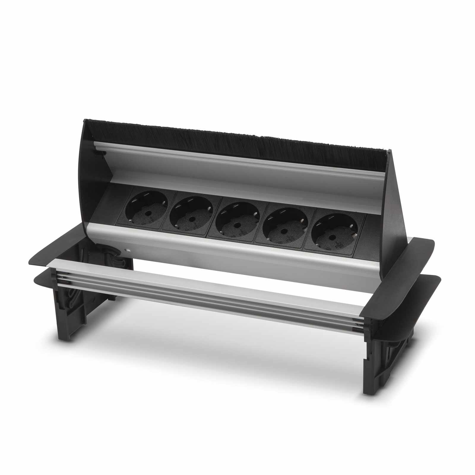 Süllyeszthető elosztó irodai és otthoni felhasználásra, fém házzal, 5 db gyermekvédelemmel ellátott aljzattal. Asztala, bútora legyen mindig elegáns és rendezett, mégis funkcionális. A rejtett elosztó kiváló megoldás lehet ha már például kész konyhával rendelkezik, de nincs elegendő konnektor a kívánt helyen. Ilyenkor falvésés és villamos hálózat bővítés nélkül, remek alternatíva lehet egy rejtett elosztó. Egy mozdulat és máris rendelkezésre áll 5 szabad konnektor. Ideális lehet olyan elektromos eszközökhöz, amit nem folyamatosan használunk, kenyérpirító, vízforraló… Ha használaton kívül vannak, az elosztó egy mozdulattal elrejthető, ezzel is megkönnyítve például a takarítást, valamint rendezett, letisztult külsőt ad a helységnek.