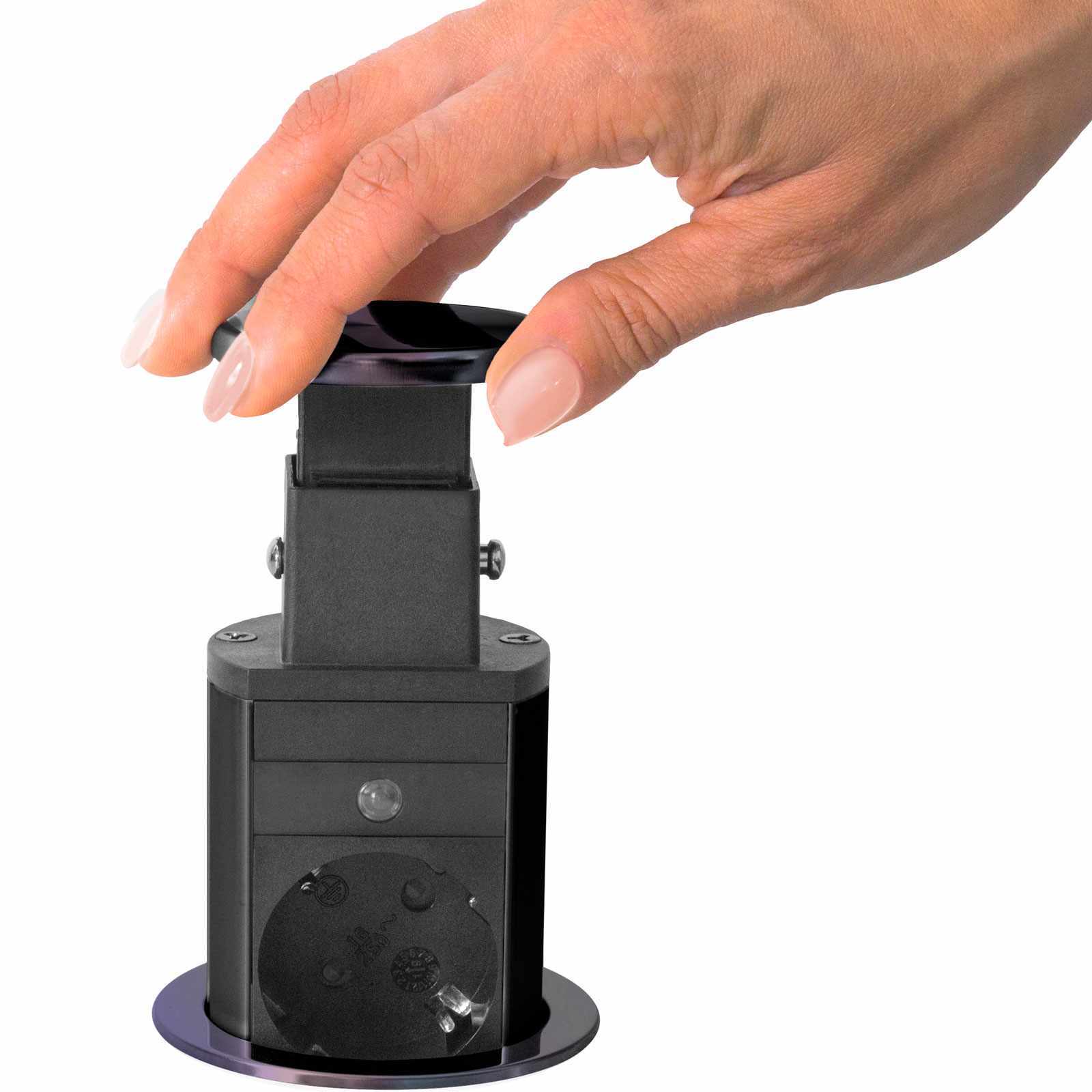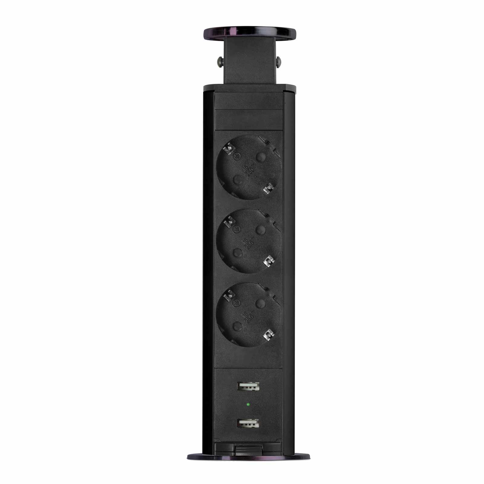 Süllyeszthető elosztó irodai és otthoni felhasználásra, fém házzal, 3 db gyermekvédelemmel ellátott aljzattal és 2 db USB csatlakozóval. Asztala, bútora legyen mindig elegáns és rendezett, mégis funkcionális. Az USB aljaztról könnyen töltheti telefonját, tabletjét vagy egyéb digitális eszközeit. A rejtett elosztó kiváló megoldás lehet ha már például kész konyhával rendelkezik, de nincs elegendő konnektor a kívánt helyen. Ilyenkor falvésés és villamos hálózat bővítés nélkül, remek alternatíva lehet egy rejtett elosztó. Egy mozdulat és máris rendelkezésre áll 3 szabad konnektor. Ideális lehet olyan elektromos eszközökhöz, amit nem folyamatosan használunk, kenyérpirító, vízforraló… Ha használaton kívül vannak, a „töltőoszlop” egy mozdulattal elrejthető, ezzel is megkönnyítve például a takarítást, valamint rendezett, letisztult külsőt ad a helységnek.