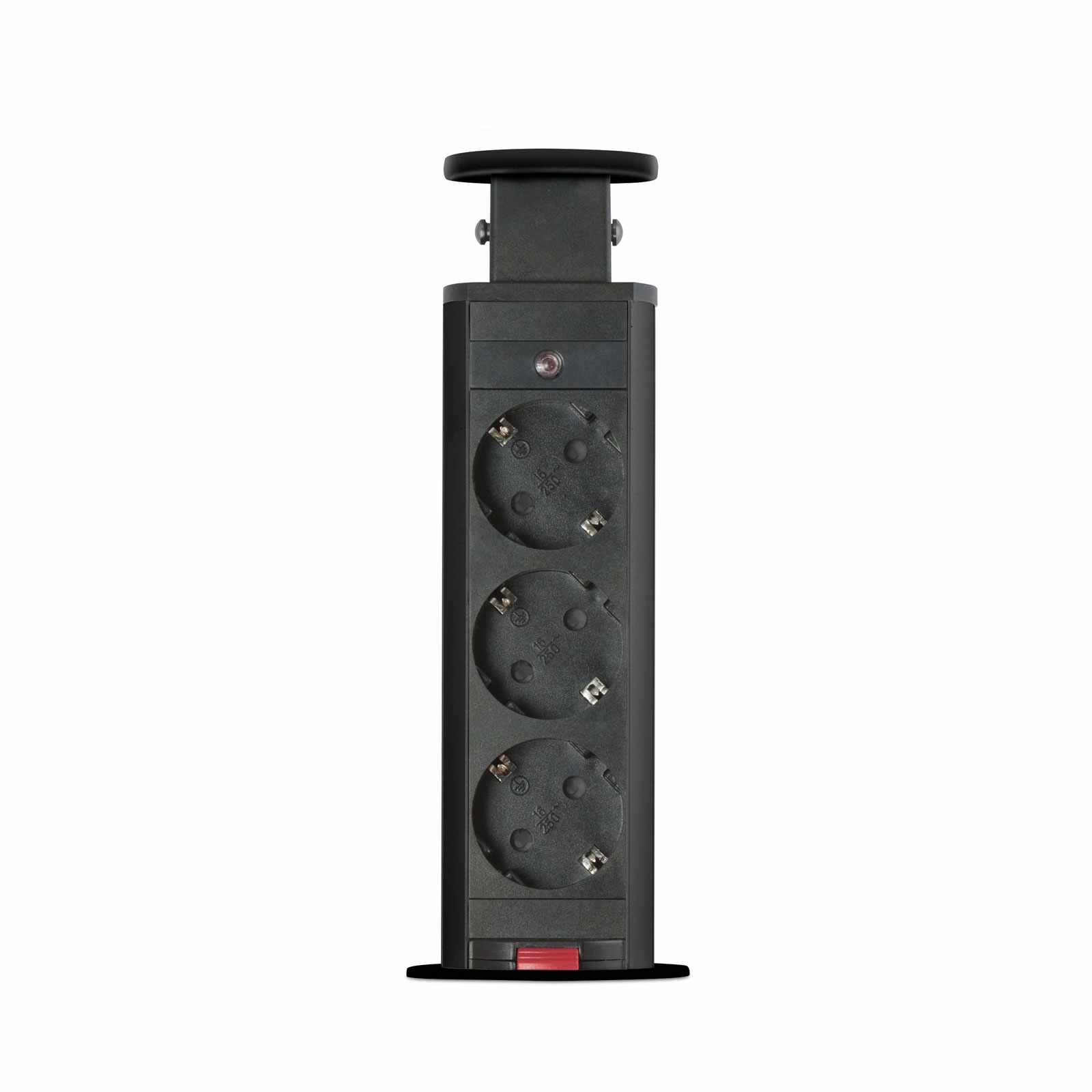 Süllyeszthető elosztó irodai és otthoni felhasználásra, fém házzal, 3 db gyermekvédelemmel ellátott aljzattal. Asztala, bútora legyen mindig elegáns és rendezett, mégis funkcionális. A rejtett elosztó kiváló megoldás lehet ha már például kész konyhával rendelkezik, de nincs elegendő konnektor a kívánt helyen. Ilyenkor falvésés és villamos hálózat bővítés nélkül, remek alternatíva lehet egy rejtett elosztó. Egy mozdulat és máris rendelkezésre áll 3 szabad konnektor. Ideális lehet olyan elektromos eszközökhöz, amit nem folyamatosan használunk, kenyérpirító, vízforraló… Ha használaton kívül vannak, a „töltőoszlop” egy mozdulattal elrejthető, ezzel is megkönnyítve például a takarítást, valamint rendezett, letisztult külsőt ad a helységnek.