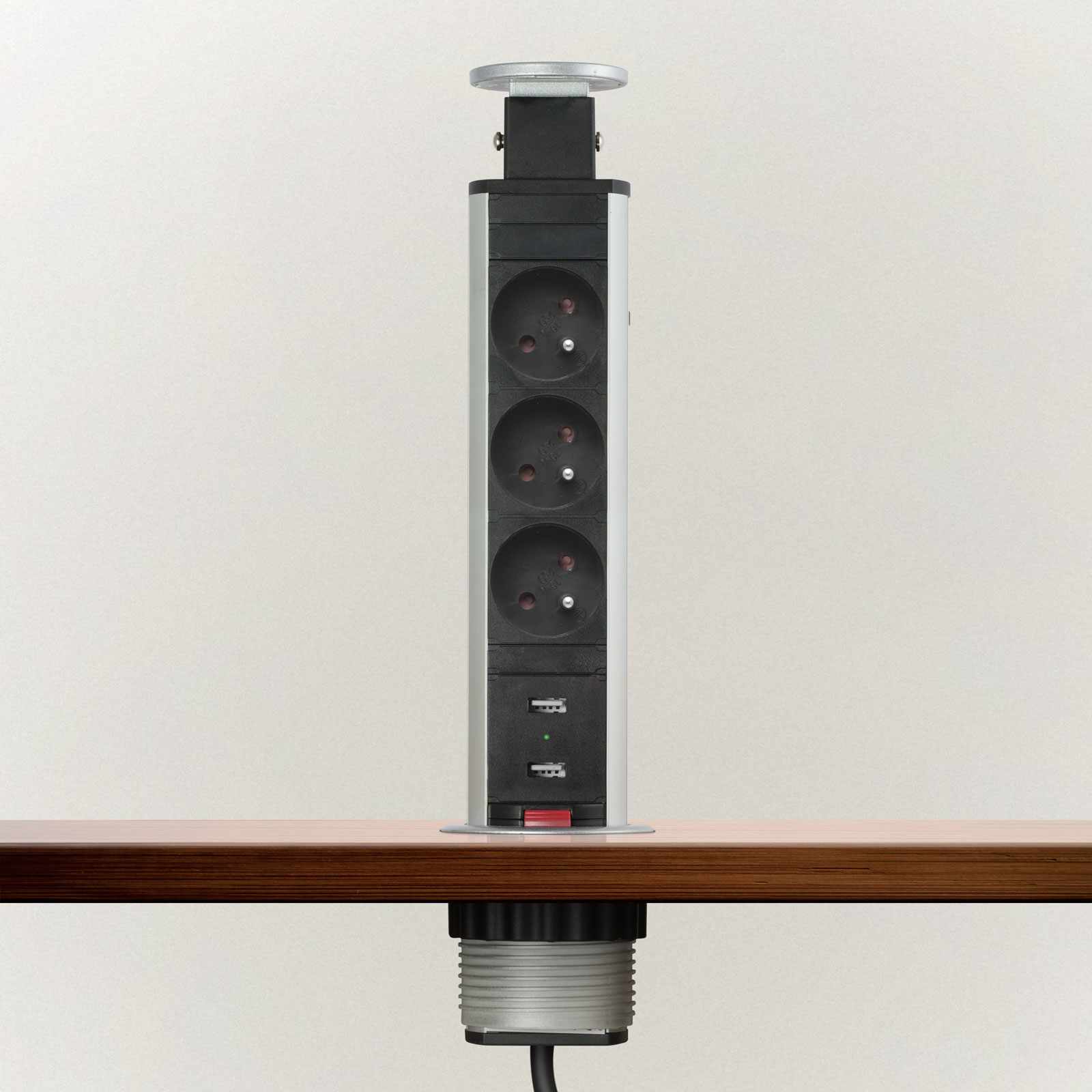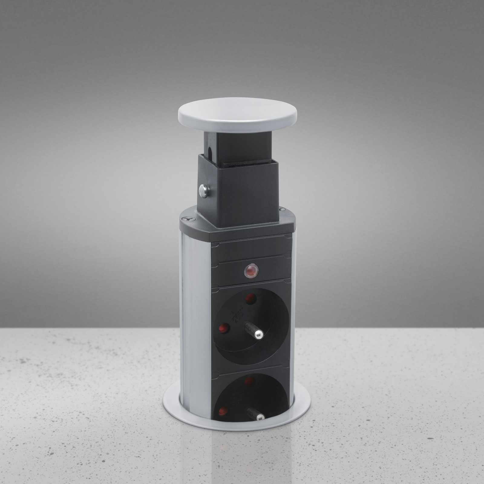 Süllyeszthető elosztó irodai és otthoni felhasználásra, fém házzal. Asztala, bútora legyen mindig elegáns és rendezett, mégis funkcionális. A rejtett elosztó kiváló megoldás lehet ha már például kész konyhával rendelkezik, de nincs elegendő konnektor a kívánt helyen. Ilyenkor falvésés és villamos hálózat bővítés nélkül, remek alternatíva lehet egy rejtett elosztó. Egy mozdulat és máris rendelkezésre áll 3 szabad konnektor. Ideális lehet olyan elektromos eszközökhöz, amit nem folyamatosan használunk, kenyérpirító, vízforraló… Ha használaton kívül vannak, a „töltőoszlop” egy mozdulattal elrejthető, ezzel is megkönnyítve például a takarítást, valamint rendezett, letisztult külsőt ad a helységnek.