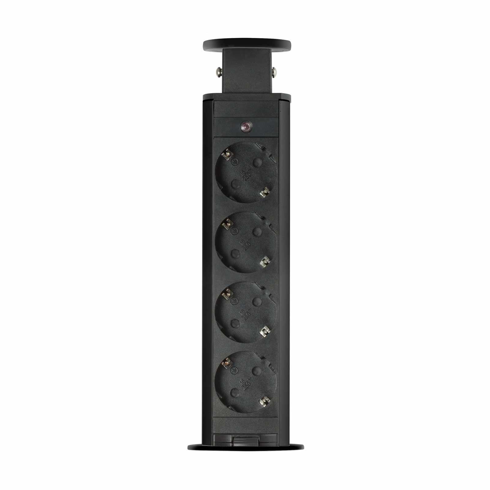 Süllyeszthető elosztó irodai és otthoni felhasználásra, fém házzal, 4 db gyermekvédelemmel ellátott aljzattal. Asztala, bútora legyen mindig elegáns és rendezett, mégis funkcionális. A rejtett elosztó kiváló megoldás lehet ha már például kész konyhával rendelkezik, de nincs elegendő konnektor a kívánt helyen. Ilyenkor falvésés és villamos hálózat bővítés nélkül, remek alternatíva lehet egy rejtett elosztó. Egy mozdulat és máris rendelkezésre áll 4 szabad konnektor. Ideális lehet olyan elektromos eszközökhöz, amit nem folyamatosan használunk, kenyérpirító, vízforraló… Ha használaton kívül vannak, a „töltőoszlop” egy mozdulattal elrejthető, ezzel is megkönnyítve például a takarítást, valamint rendezett, letisztult külsőt ad a helységnek.