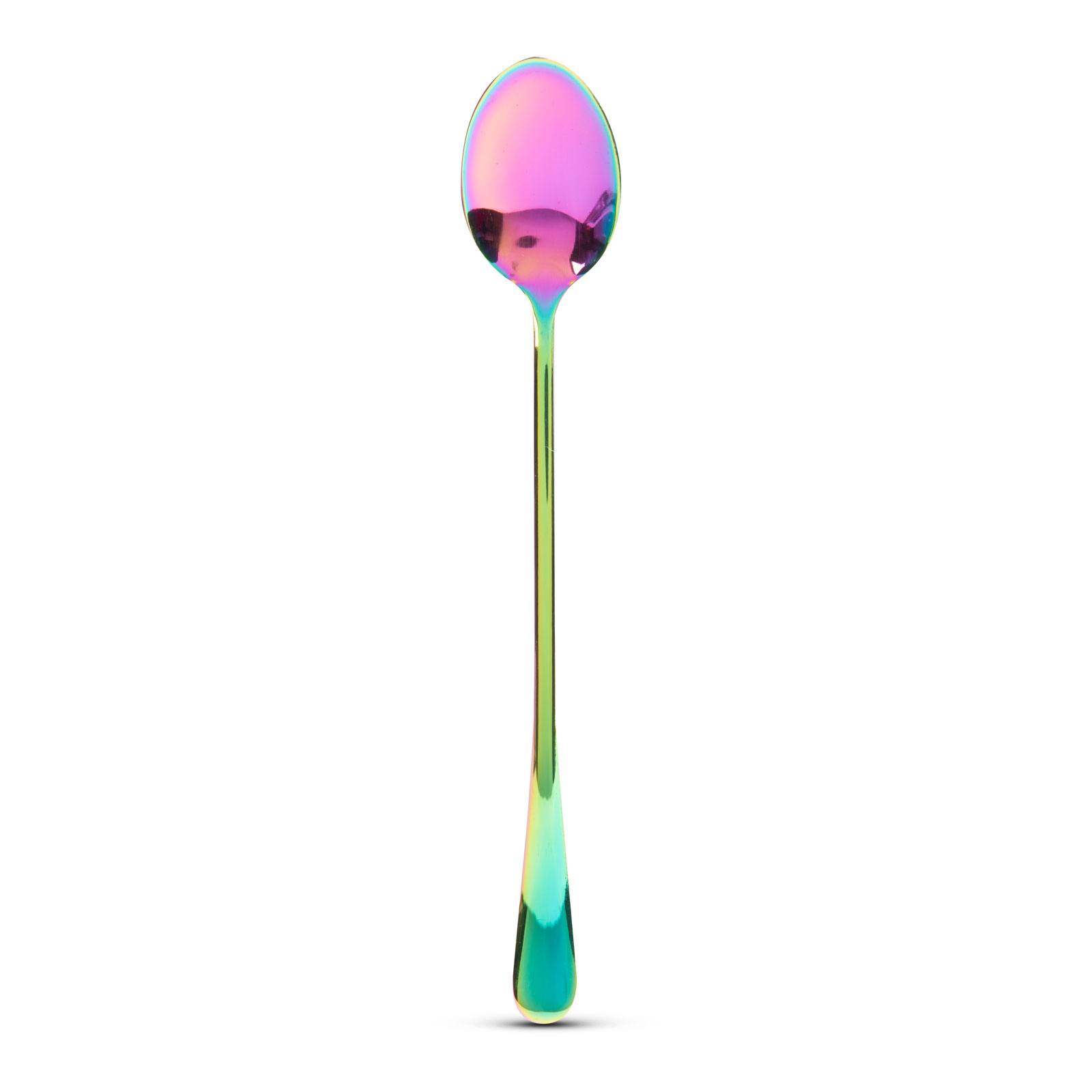 Rozsdamentes acél kávéskanál / latte macchiato kanál – szivárványos – 195 x 32 mm – 2 db / csomag