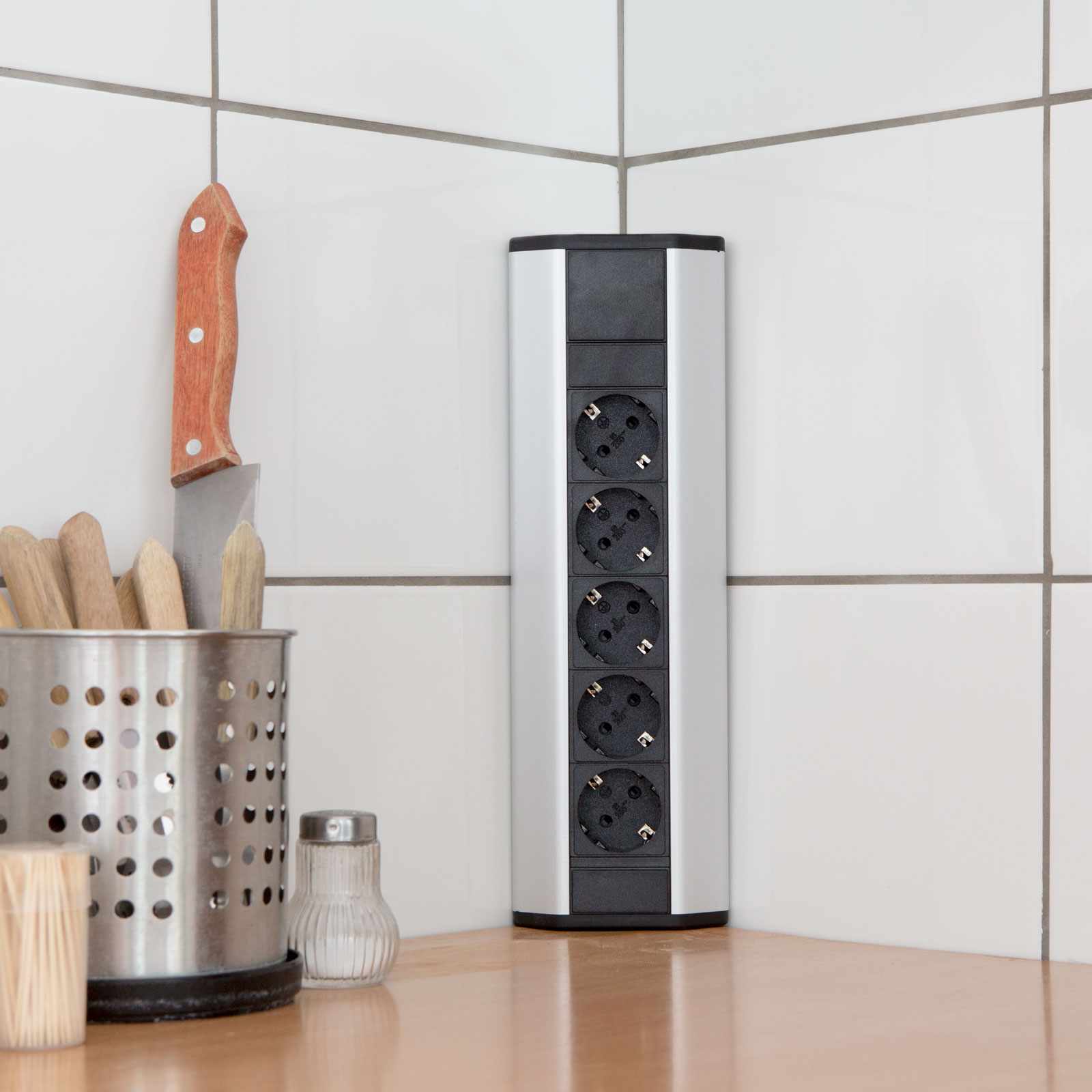 Ennek a sarokban helyezhető elosztónak köszönhetően helyet takaríthat meg bármely felületen. Ideális lehet konyhákba, szobákba, irodákba és minden olyan helyen, ahol nem lehetséges villamoshálózat, konnektor kiépítése. Használatával elkerülhető a falak vésése vagy a munkapult, bútorlap nagymértékű vágása. A sarokba helyezhető elosztó helyet takarít meg Önnek a falfelületen is, így például több hely marad a konyhapult felett kések, konyhai eszközök rögzítésére, felakasztására.