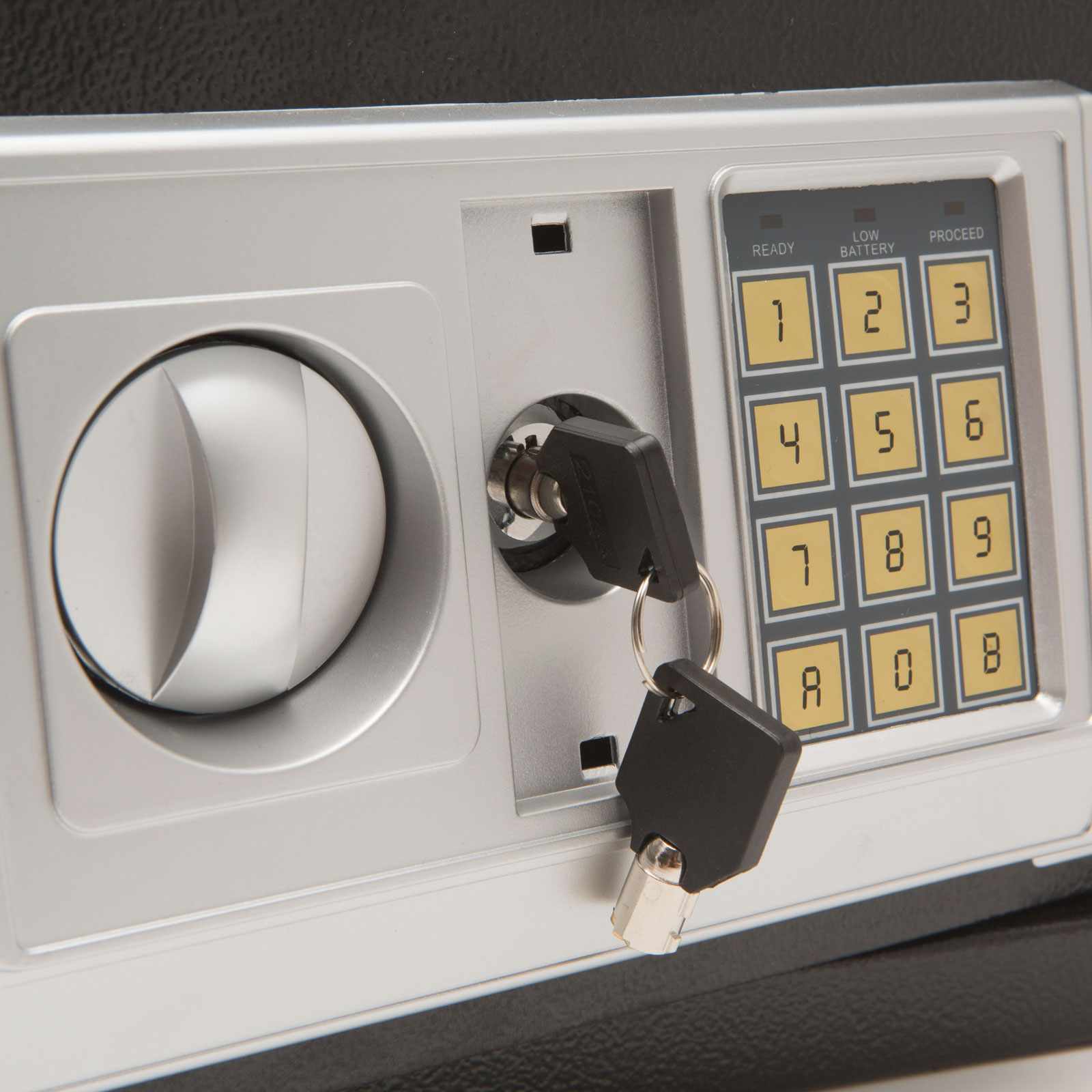 Tárolja értéktárgyait, ékszereit, útlevelét biztonságos helyen egy kompakt, erős széfben. Az elhelyezett pótolhatatlan tárgyak biztonságáról digitális védelem gondoskodik, melynek PIN-kódját csak Ön tudhatja, így kizárhatóak az illetéktelen személyek. A biztonsági kód 3-8 számjegyből álló számsor lehet, teljesen egyedi számkombinációban. A PIN-kód elfelejtése esetén a széf csak a mesterkulccsal nyitható ki.