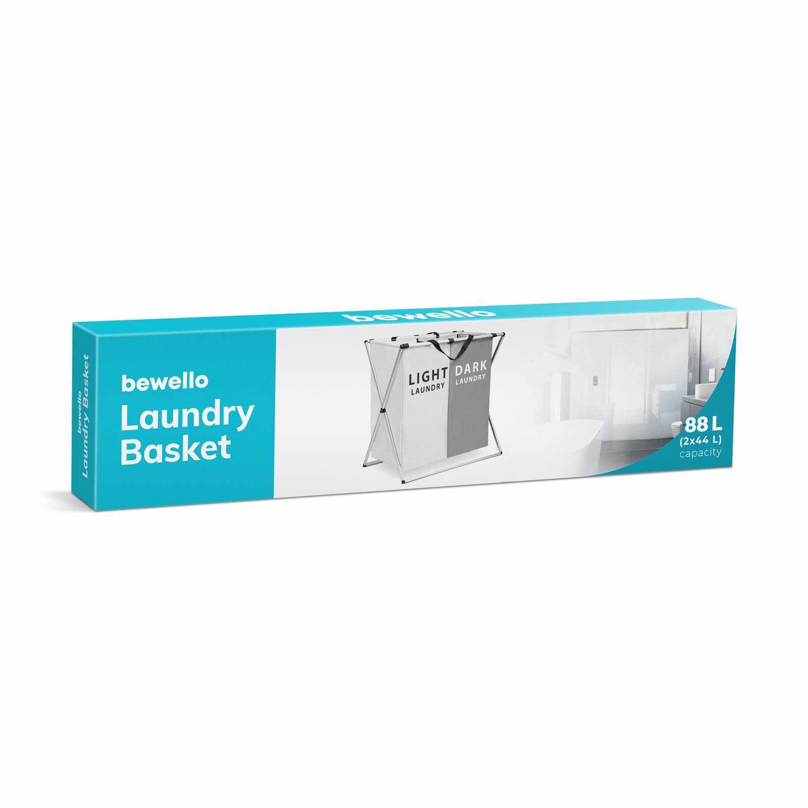 Modern megjelenésű, szövetből készült szennyestartó kosár több rekesszel. A masszív, fém váznak és a nagy befogadóképességnek köszönhetően akár több kilógram ruha, ágynemű tárolására is alkalmas. A rekeszek lehetővé teszik a különböző színű ruhák elkülönítését. Az egy mozdulattal történő összecsukás és a hordozófülek könnyű hordozhatóságot garantálnak.