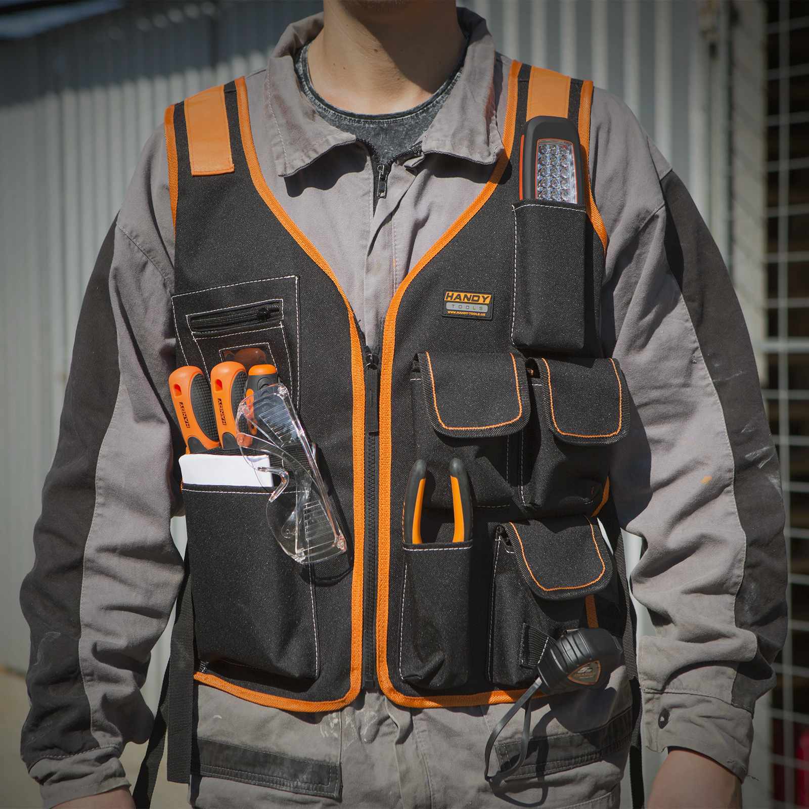Anyagfelhasználása és kialakítása miatt meglehetősen ellenálló. A hosszú élettartam érdekében az igénybevett pontokon megerősítéssel, multifunkcionális zsebekkel. A mellény számos tárolóhellyel ellátott, többek között 7 zsebbel – melyből 3 zsebfedővel, 1 pedig cipzárral szerelt – igazolvány tartóval, akasztófülekkel. Extra erős igénybevételre készült szerelőmellény. Oldalain 2-2 szabályozható pánttal állítható be a kívánt méret, elején cipzárral záródik.