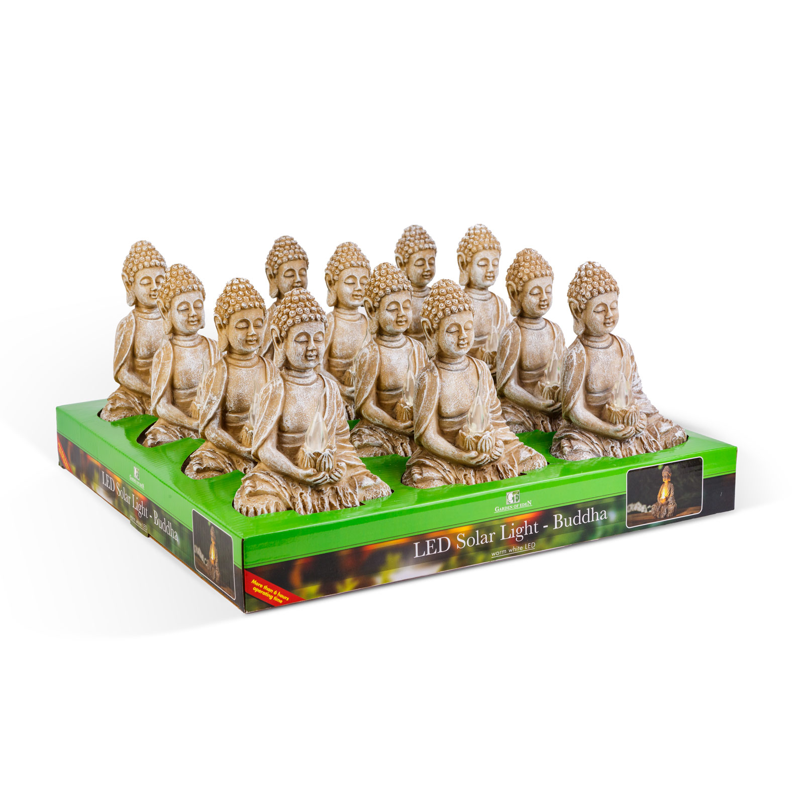 Szolár Buddha gyertyával – 1 melegfehér LED – 12,5 x 8,5 x 19 cm Garden of Eden 11269