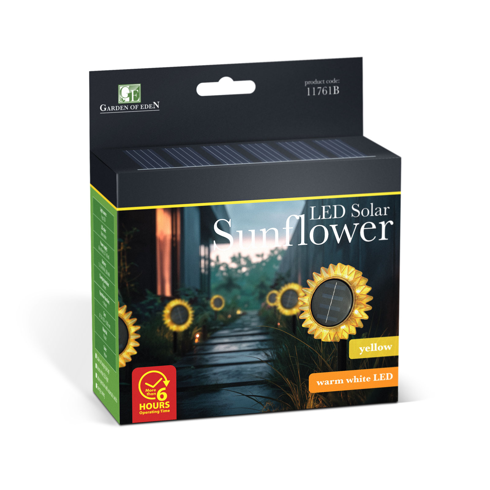Ez a dekoratív szolár napraforgó lámpa hangulatossá varázsolja kertjét vagy teraszát. A többféleképpen rögzíthető kialakításnak köszönhetően leszúrhatóként és felakasztva is használható, így könnyedén illeszkedik bármilyen kültéri környezetbe. A beépített napelem napközben hatékonyan gyűjti a napfényt, melyből energiát biztosít az esti melegfehér LED világításhoz. A lámpa automatikusan kapcsol be sötétedés után, így nemcsak szép, de praktikus megoldás is a kert díszítésére.