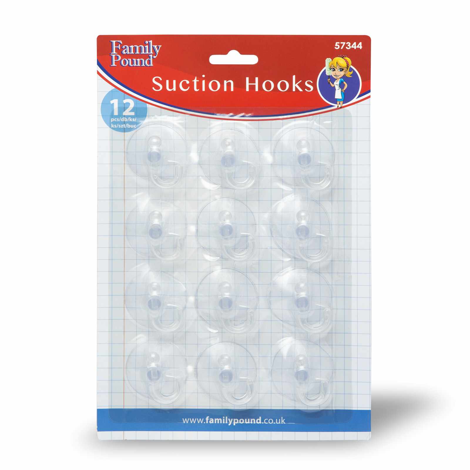 12 darabos akasztó szett, mely tapadókorongos hátuljának köszönhetően stabilan fennmarad a síkfelületeken.