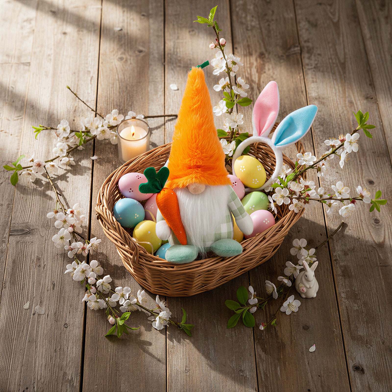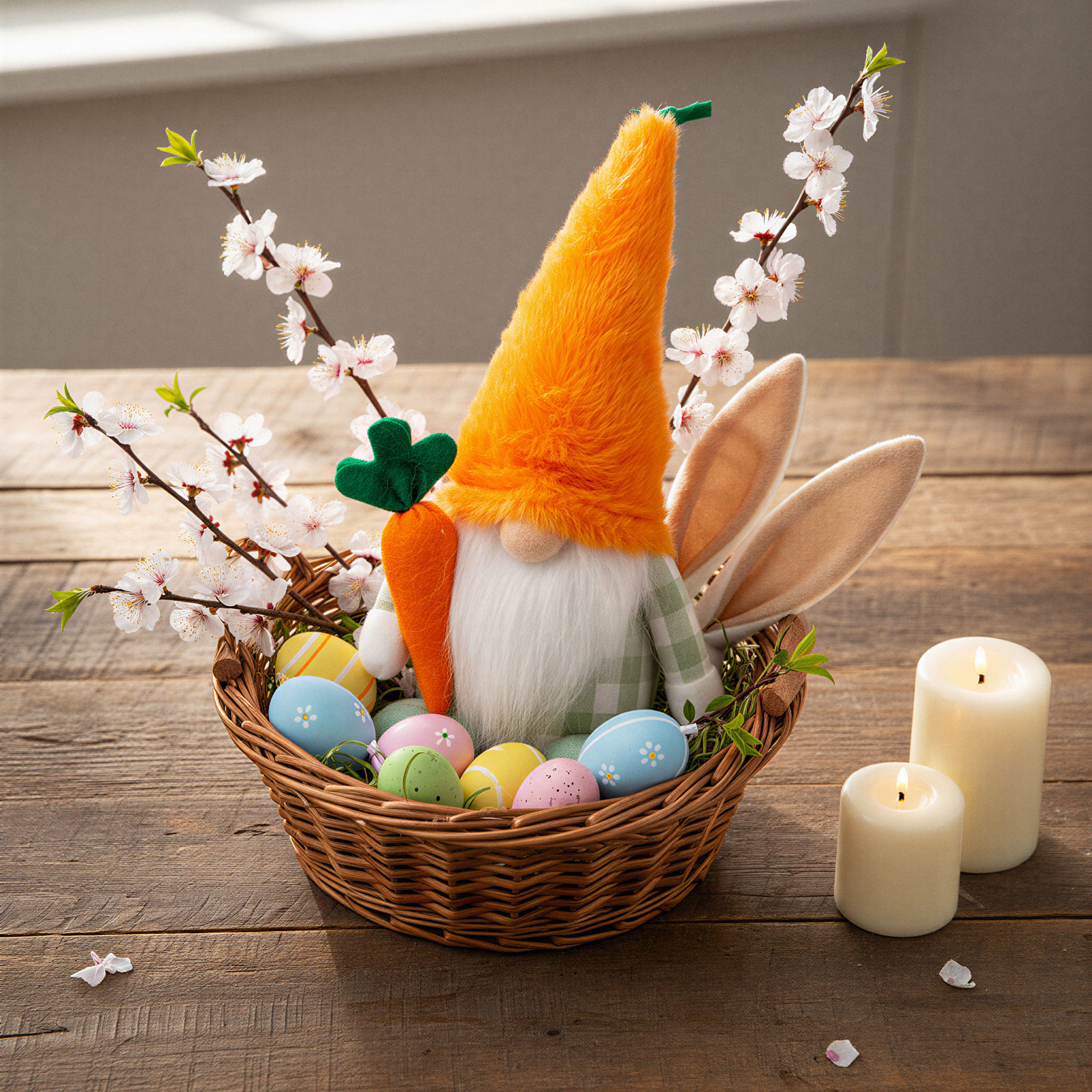 Ez a bájos textil manó dekoráció tökéletes választás húsvéti vagy tavaszi dekorációként, amely vidám és barátságos hangulatot teremt otthonában, irodájában. A manó élénk narancssárga répa formájú sapkával és egy kis textil répával a kezében igazán egyedi és különleges megjelenést biztosít.