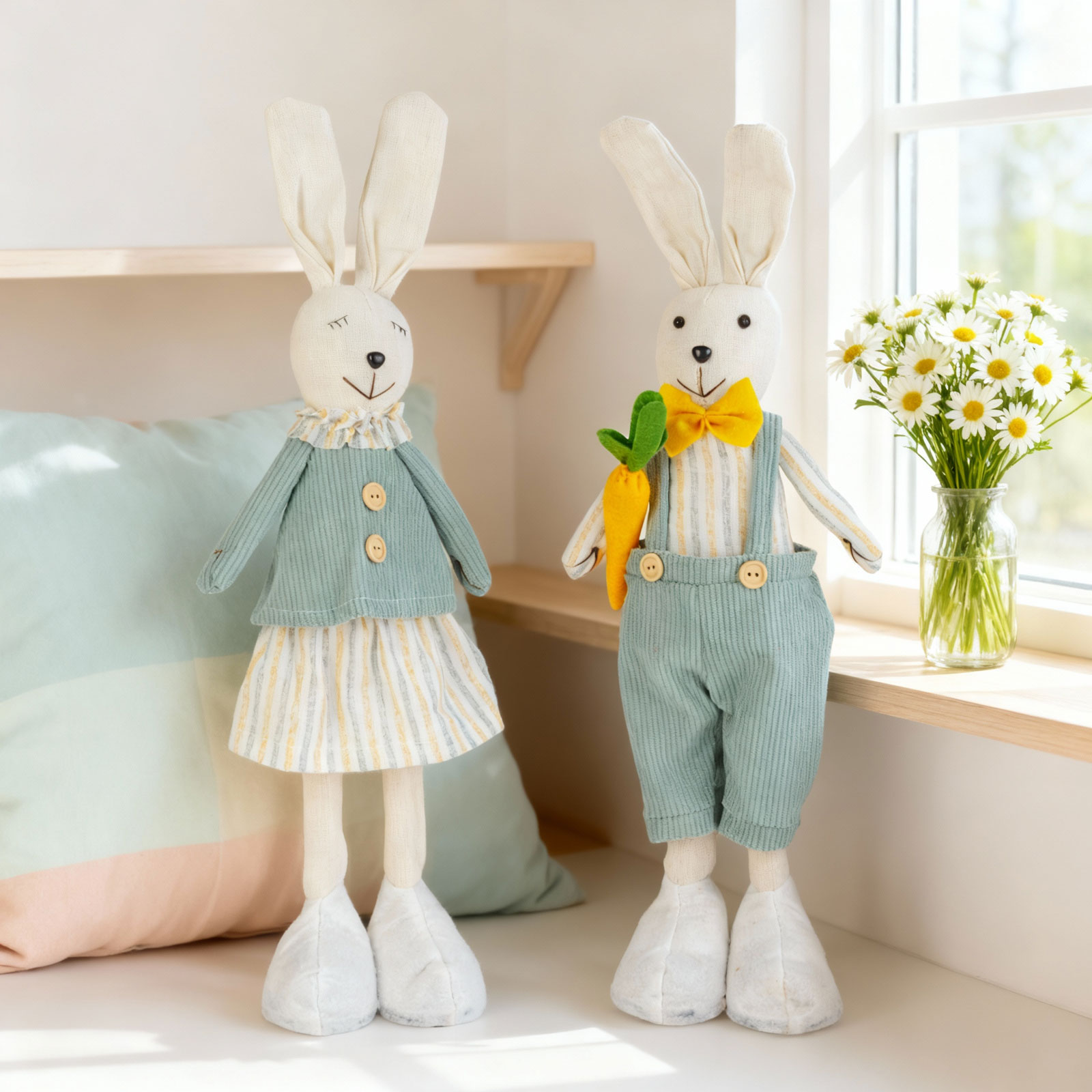 Ez a bájos textil nyuszi dekoráció tökéletes választás húsvéti és tavaszi díszítéshez, de az év bármely időszakában otthonos és vidám hangulatot teremt. Puha textil anyagból készült, kedves megjelenésével igazán különleges dekorációs eszköz. A nyuszi kétféle változatban kapható, így kiválaszthatja az Ön számára legmegfelelőbbet, vagy akár kombinálhatja őket a még harmonikusabb összhatás érdekében.