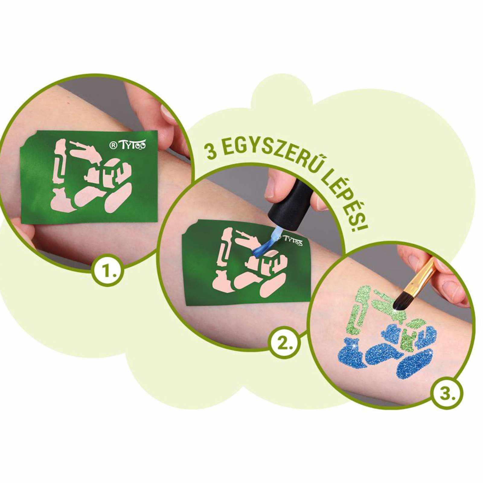 A TyToo csillámtetoválást a gyermekek is biztonságosan használhatják, ugyanis kozmetikai minőségű anyagokat tartalmaz, ami megfelel az EU szabályoknak. Alkalmazása egyszerű, akár egy 6 éves kisgyermek is el tudja magának készíteni a saját csillámtetkóját. Ráadásul az alkotás közben még a készségeit is fejlesztheti. A sablonok kifejezetten gyermeke pici karjára lettek tervezve. Így akár saját magának is könnyedén elkészítheti az apró szikrázó tetkóit, de közösen szórakozva még jobb móka lehet számára!