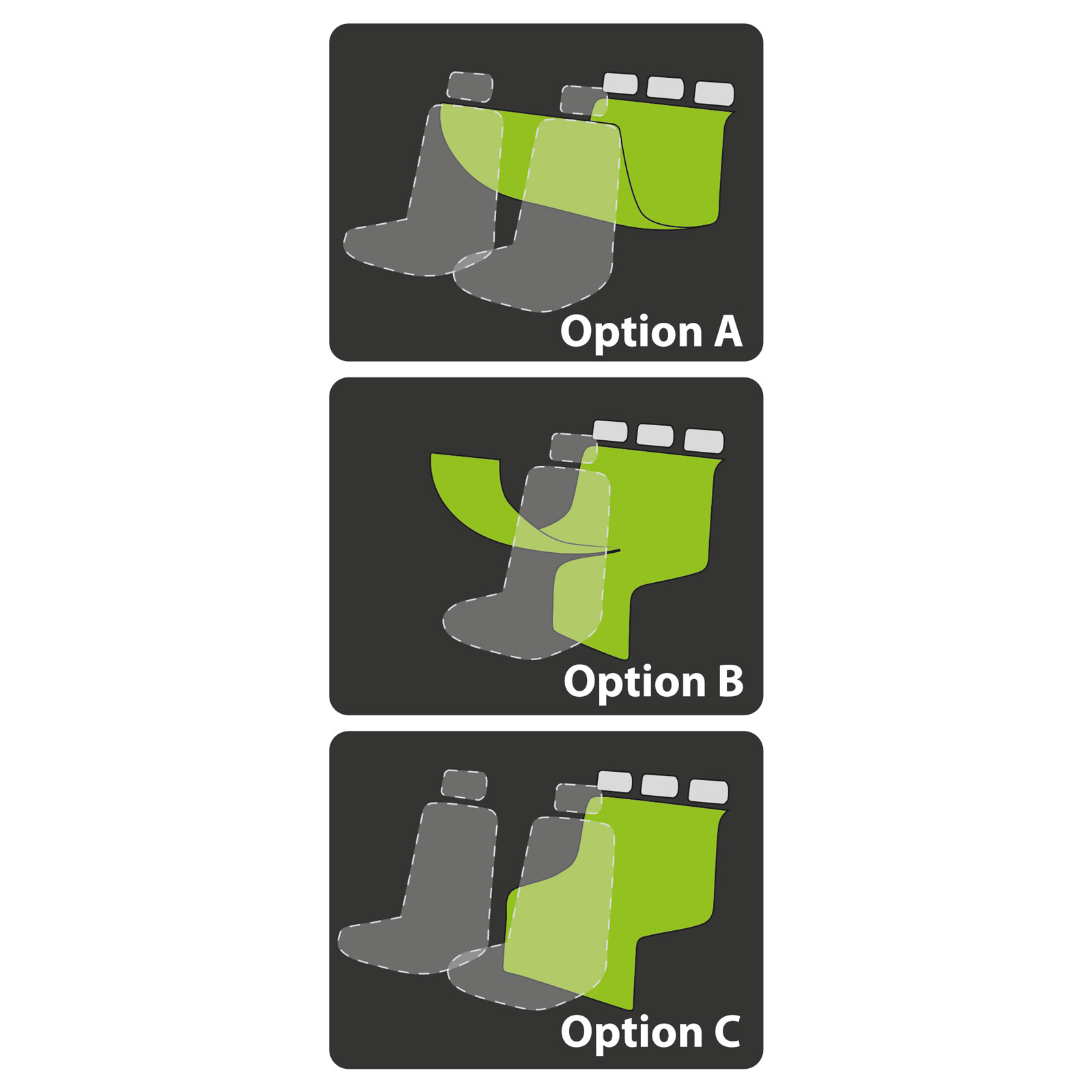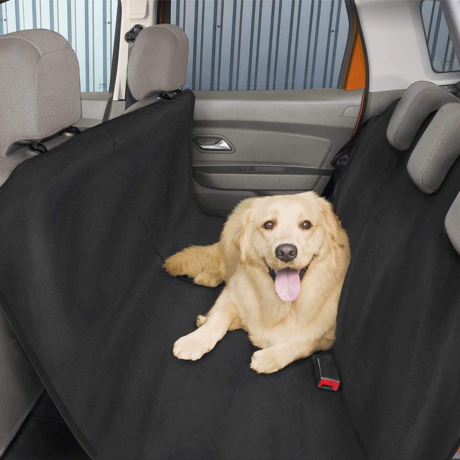 Autós ülésvédő huzat elsősorban kutyák, macskák részére. Egyszerűen rögzíthető a hátsó fejtámlákra a csatos, gumis kialakításnak köszönhetően. Vízálló vászon anyaga megvédi az autó ülését kutyák, macskák által okozott szennyeződésektől. (sár, nyál, elhullajtott szőr…) Ideális lehet kisméretű csomagtartóval rendelkező autókhoz, ahol nem oldható meg a háziállat utaztatása csak a hátsó üléseken. A termék rendelkezik egy cipzárral, amely segítségével az egyik oldal ülőlapja leválasztható, ha utast is szeretne szállítani a háziállat mellett.
