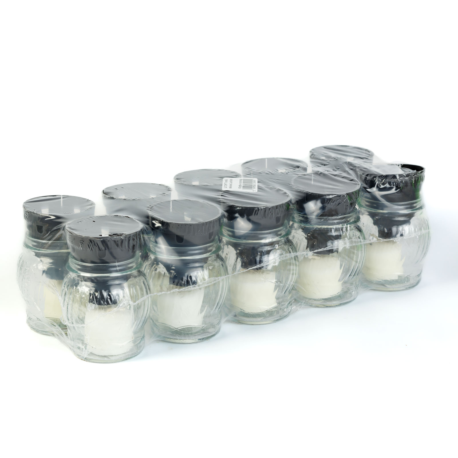 Üveg mécses műanyag kupakkal, üveg szín: fehér, kupak szín: fekete – 14 cm TW1012
