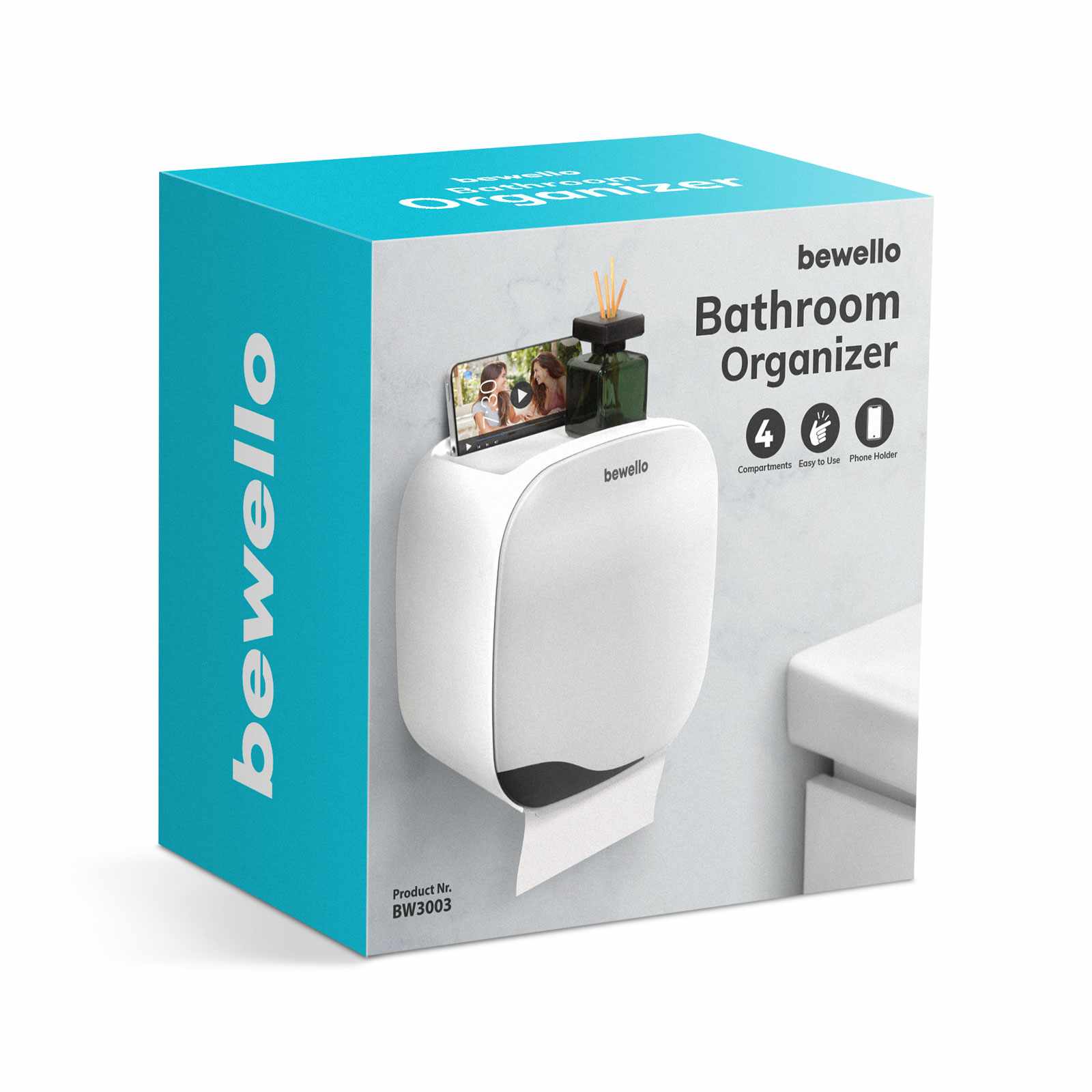 WC-papír tartó szekrény – fehér – 200 x 130 x 205 mm Bewello BW3003