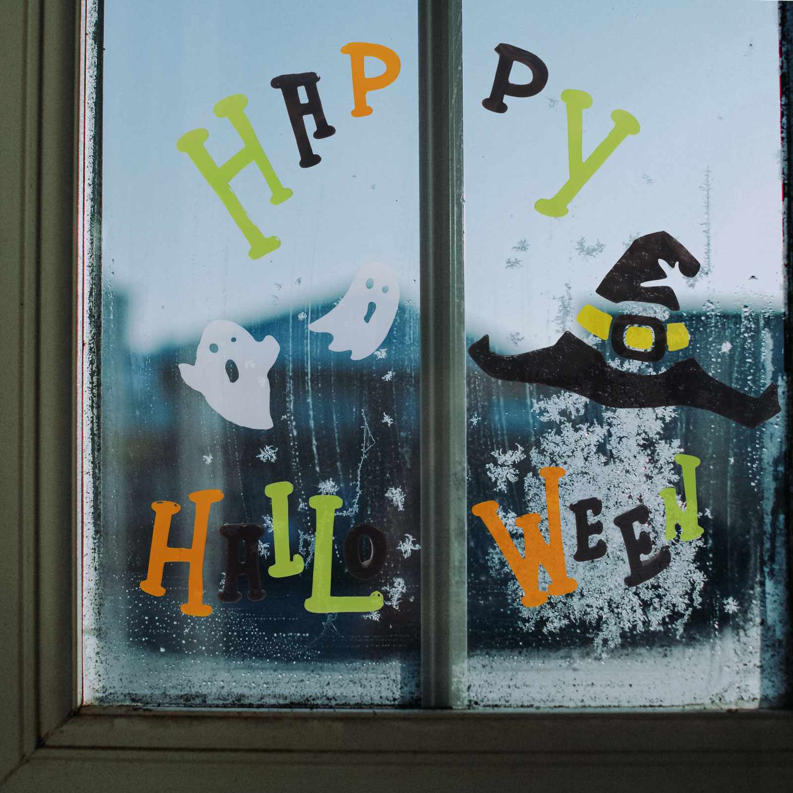 Vidám, halloween-i ablakdekor matrica. A matricák külön-külön felhelyezhetőek, így tetszőlegesen elrendezhetőek az ablakon. Könnyen felragasztható és nyom nélkül eltávolítható. Ragasztóanyagot nem tartalmaz, maga a gél ragad, amely langyos vízzel mosható, így újra felragad az üvegfelületre.