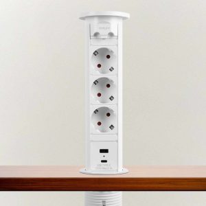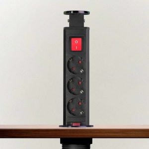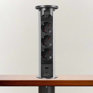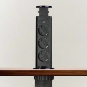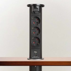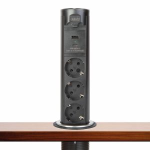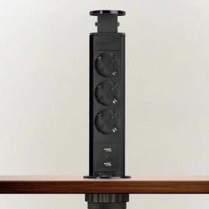 Motoros rejtett elosztó – „Touchcontrol” – 3-as + USB + Type-C – fekete Delight 20453B