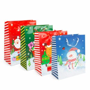 Karácsonyi ajándéktasak – papír – 330 x 102 x 457 mm – 4 féle / csomag – 12 db / csomag Family 58300