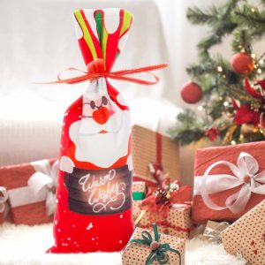 Karácsonyi italos üveg tartó szalaggal – mikulás – poliészter – 32 x 12,5 cm Family 58727A