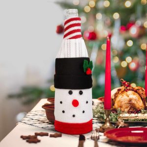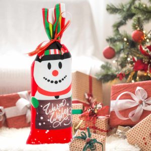 Karácsonyi italos üveg tartó szalaggal – hóember – poliészter – 32 x 12,5 cm Family 58727B