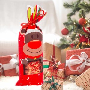 Karácsonyi italos üveg tartó szalaggal – rénszarvas – poliészter – 32 x 12,5 cm Family 58727C