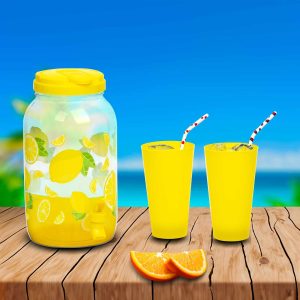 Italadagoló csappal, műanyag pohárszettel – 3,8 l – citrom Family 57243J