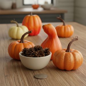 Őszi dekoráció – tök és toboz szett – 9 részes – 5-7 cm 59004